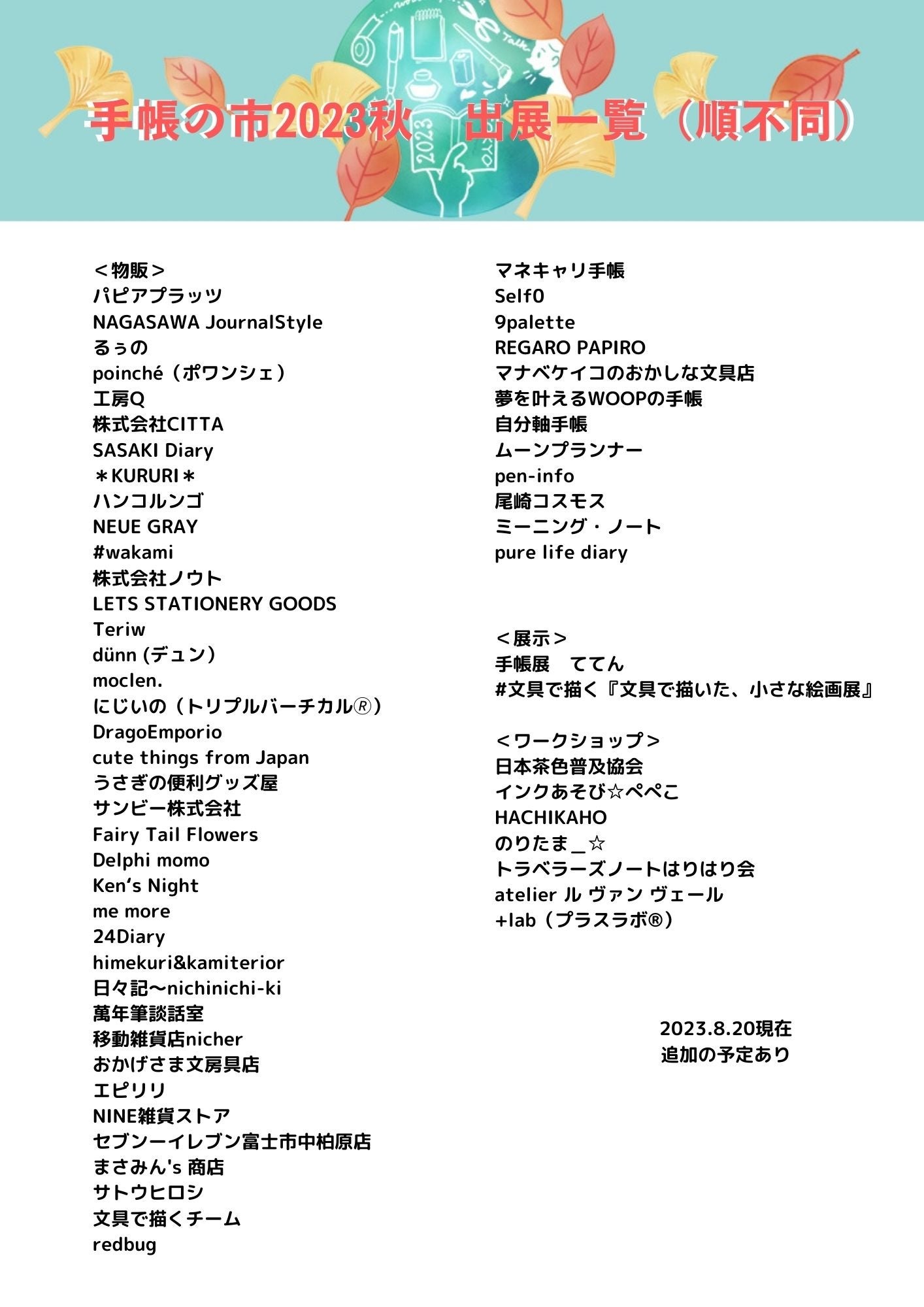 手帳の市でおなじみのユニークなワークショップはもちろん、初登場のワークショップもあり大幅拡大。
