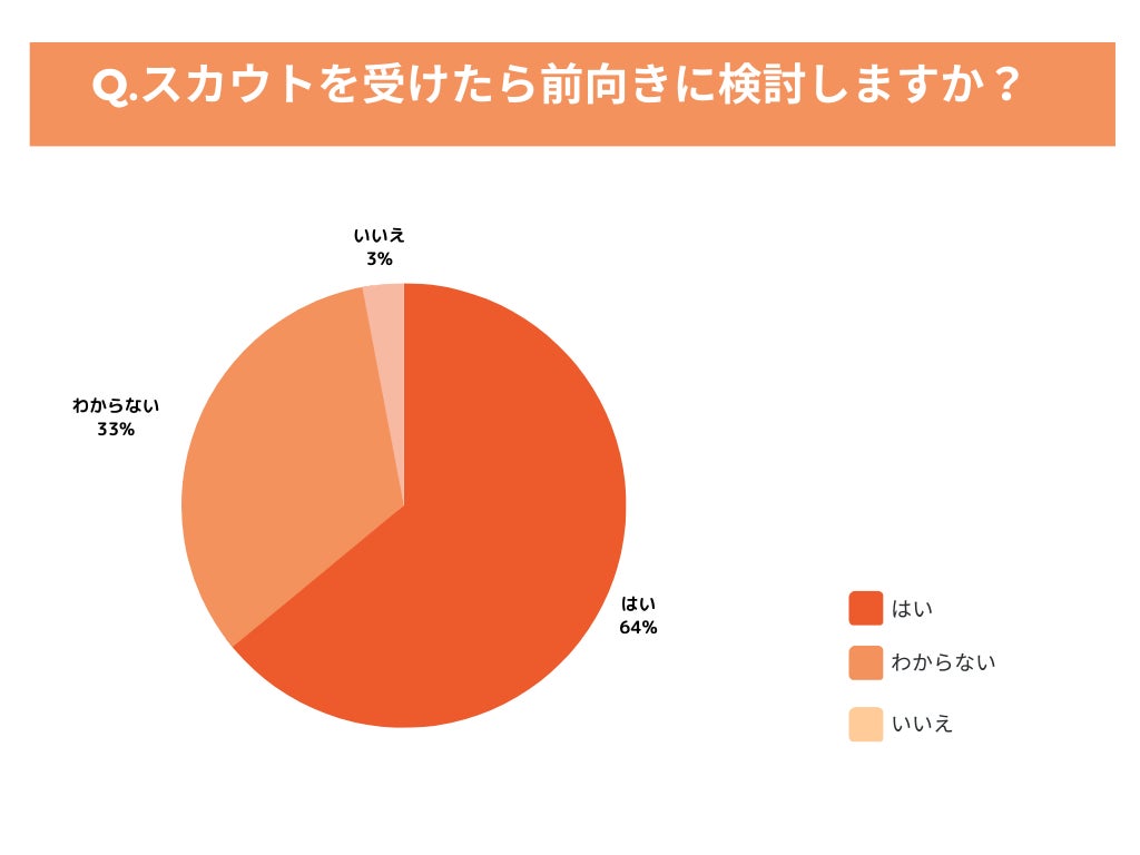 スカウトを受けたら、6割以上が前向きに検討したいと回答