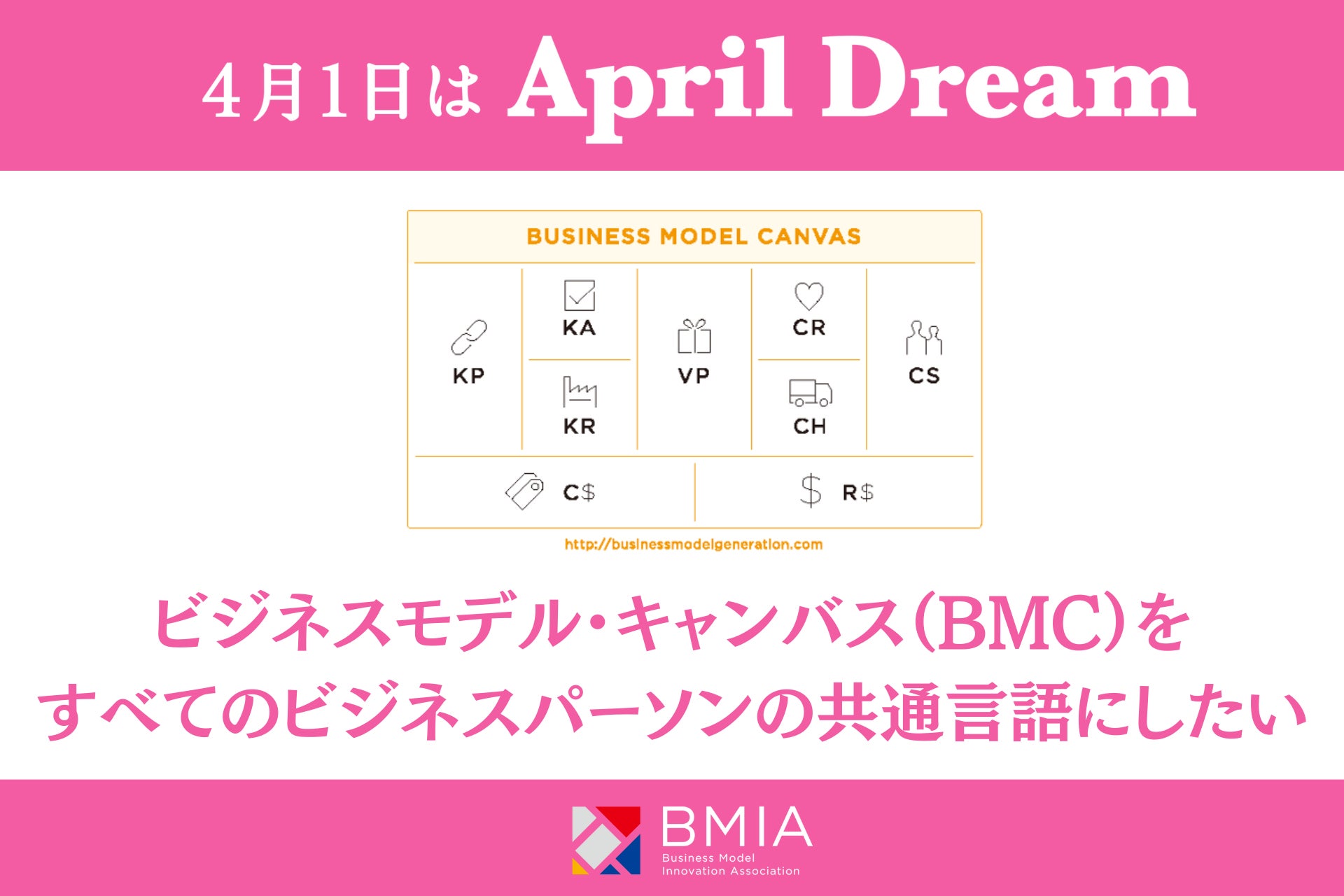 それらを網羅した、ひと目でそのビジネスが分かる「ビジネスモデル・キャンバス(BMC)」を、みんなが知るツールに、ビジネスパーソンの共通言語にしたい! それが大きな夢への第一歩です。