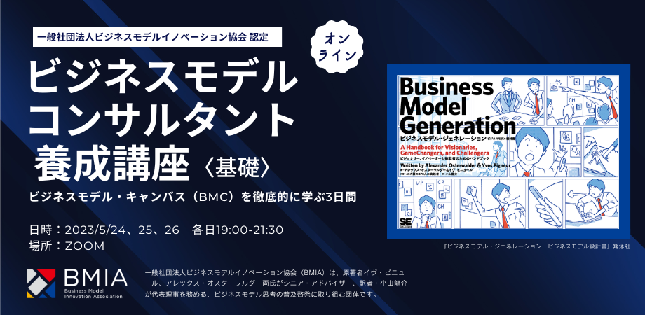 - [BMCを知っている方に]BMIA認定ビジネスモデル・コンサルタント養成講座(基礎)オンライン開催