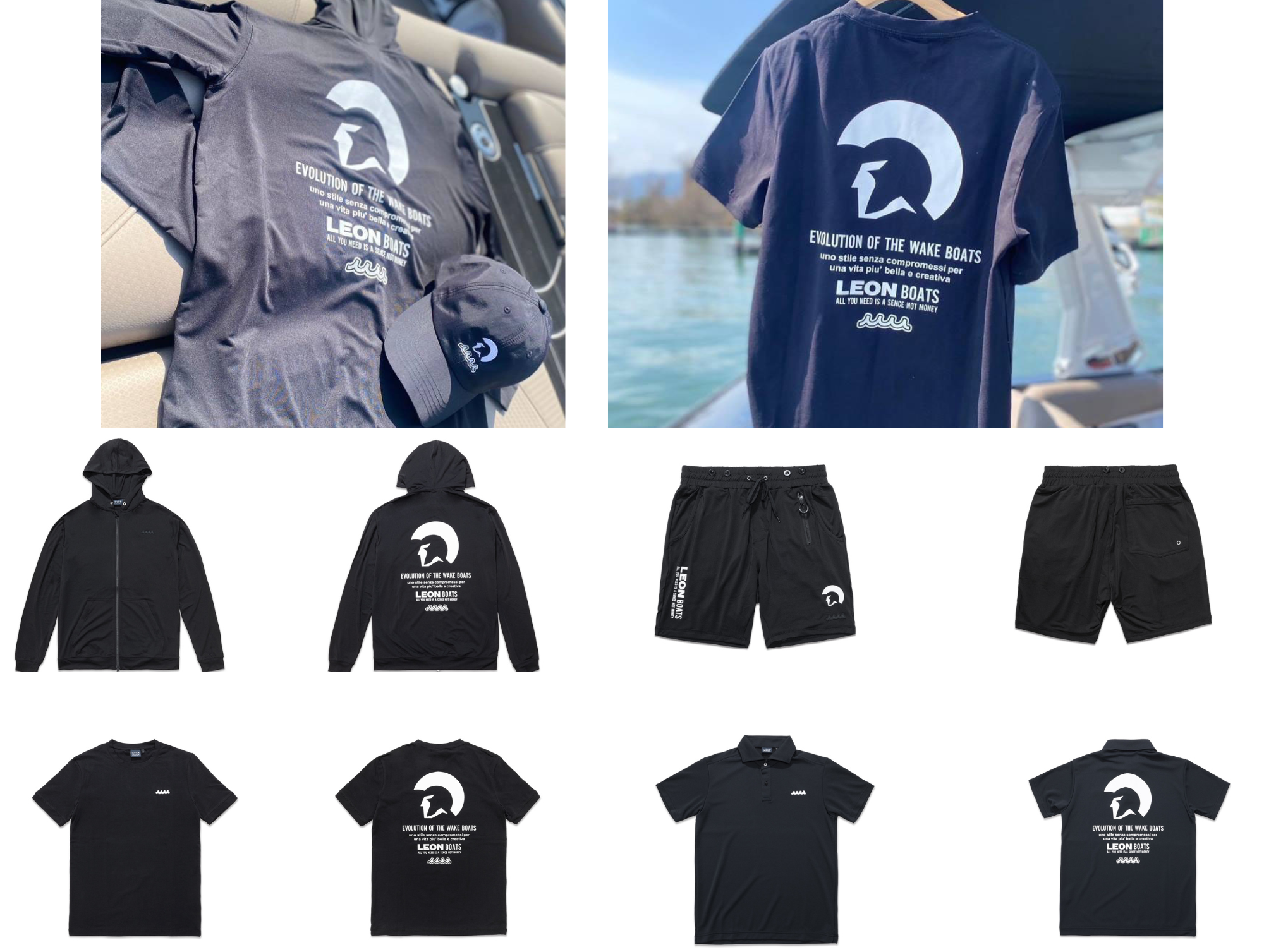 ボートのデザインイメージを残しながら、3ブランドのロゴを配したアイテムが、Tシャツ、ポロシャツ、ラッシュ