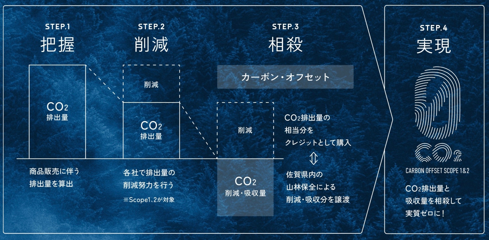佐賀県太良町の山林を守ることで、発生した二酸化炭素を吸収する「カーボンオフセット済み」のエシカル商品です。