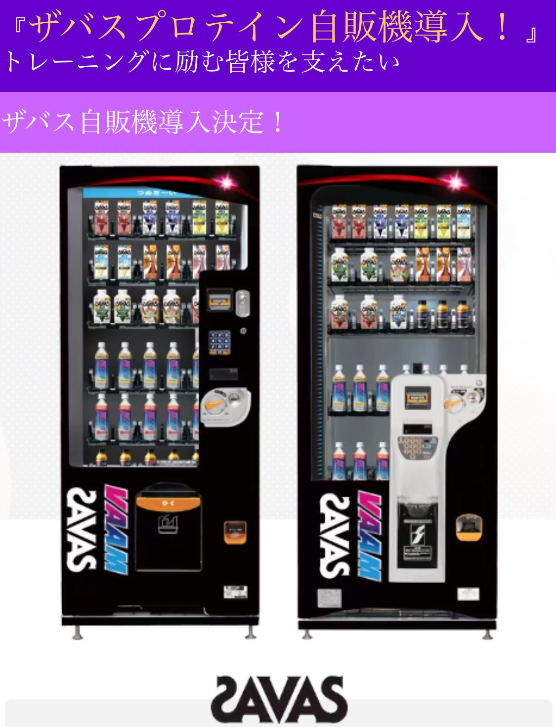 松戸駅前店ではザバススポーツ自動販売機を導入し、人気のプロテインを店内で購入できるようにしています。
