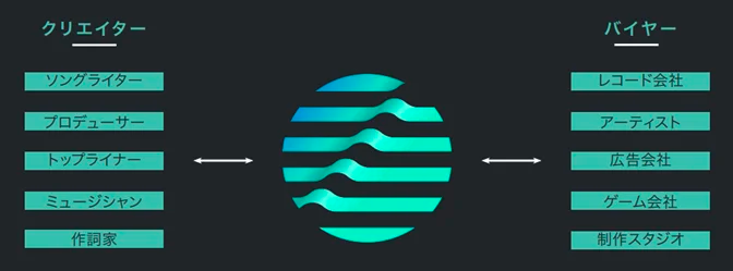 SURF Musicのマーケットプレイスの根幹には、AIとオートメーション、アナリティクス機能があり、企業やレーベル、広告代理店、映画やテレビ制作会社はSURF Musicプラットフォーム上に存在する何百人ものソングライターやプロデューサー、音楽クリエイターによる未発表デモ音源に簡単にアクセスできます。また、音楽クリエイターたちはレーベル、広告代理店、映画/テレビ制作会社からの楽曲リクエストを閲覧ができ、リクエストに見合った楽曲を制作・提供することで、企業とクリエイターの有機的なマッチングが生まれます。さらに、マーケットプレイス上ではAIによる自動の楽曲タグが付与され、カタログ管理やプレイリスト整理に加えて、今回の例のように具体的なニーズに沿った楽曲の提供も可能となります。