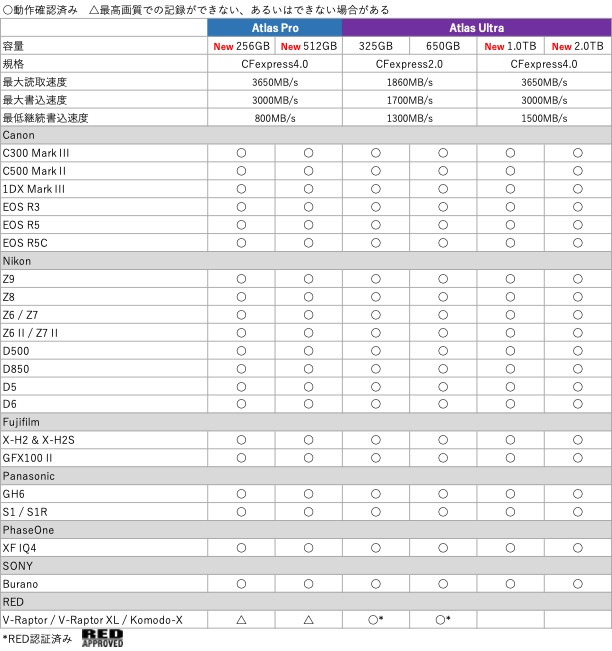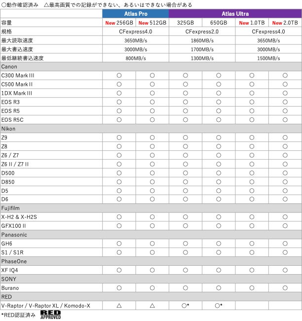 *3 読取1850MB/s、書込1700MB/s仕様のAtlas CFexpress2.0 Type Bカード