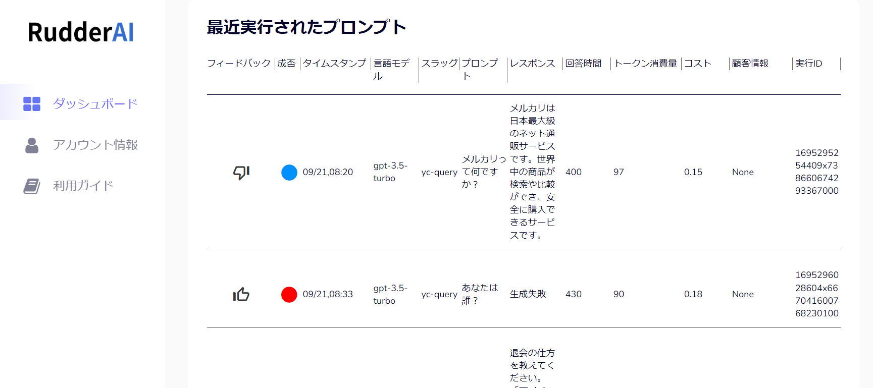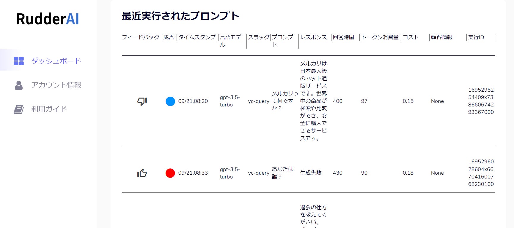 RudderAI(「ラダーエーアイ」)はAIサービスを提供している企業が、ChatGPTのAPIなどの利用ログを収集し、間違った回答を検出したり、収集したデータを簡単に活用できるプラットフォームです。