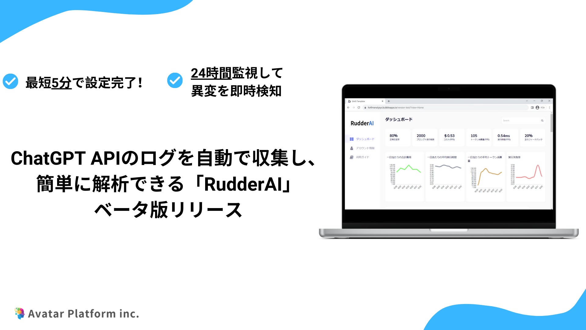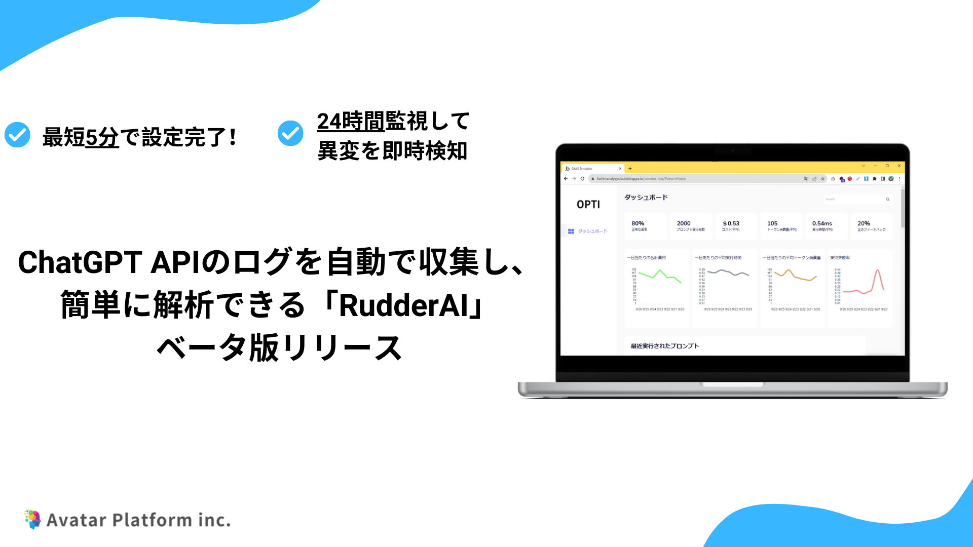 ChatGPTアプリ、作りっぱなしになっていませんか? ChatGPT APIの利用ログを自動で収集し、資産化できるプラットフォーム「RudderAI」ベータ版をリリース
