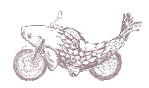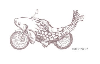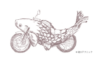 ウオトバイは、魚(鯉)をモチーフとしたオートバイです。現在の首都高が位置している場所には昔、川が流れていました。川の中をスイスイ泳いでいた魚と、首都高をスイスイ走るバイクをかけあわせ、今回のウオトバイが誕生しました。