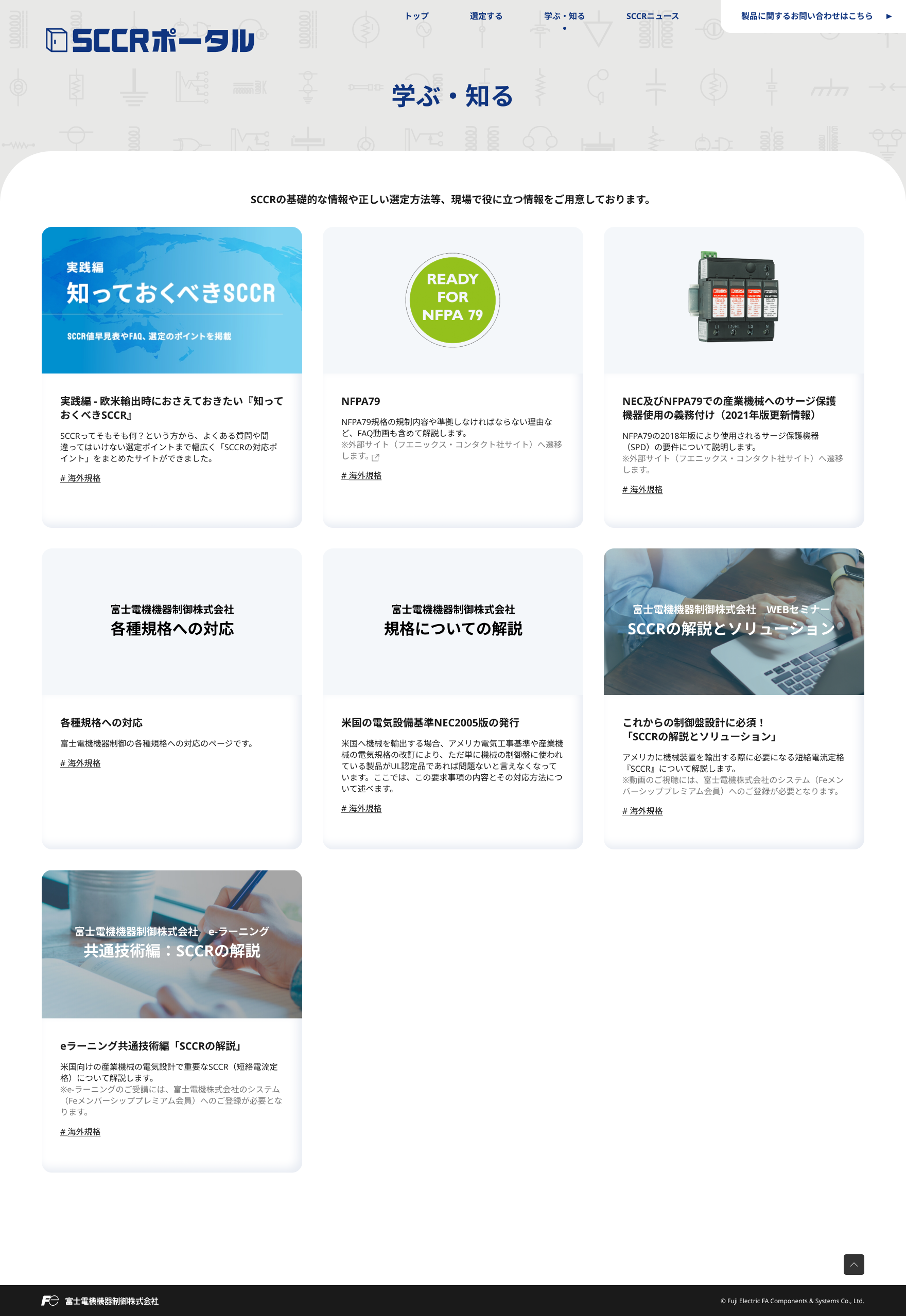 新規に北米輸出用の回路を設計する方に対して、基礎的なことから最新の情報、SCCRに関連する規格情報(NFPAやNECなど)、社内勉強会など現場で役に立つ情報を集めたページを準備しました。今後お客様の声を反映し、さらに必要な情報を充実できるように、協賛メーカとも連携強化していきます。