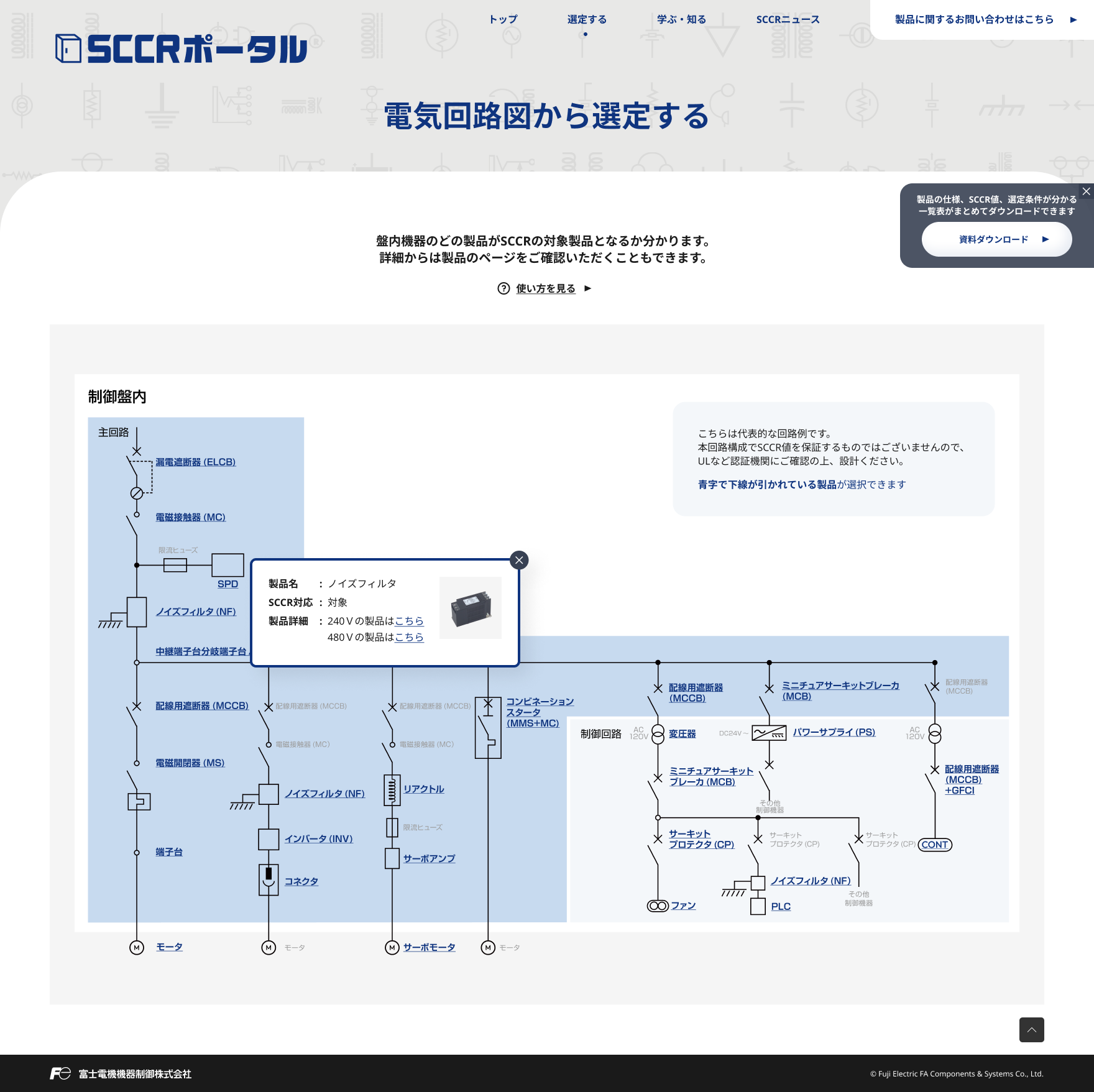 今後SCCRを検討しなければならない初心者から、すでに熟知されている設計者を考慮し、様々な検索の仕方を準備しました。その中でも電気設計者の日常業務に近い、電気回路よりSCCR値を検索する方法を設けました。