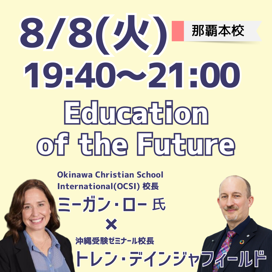 沖ゼミSDGsWEEK第4弾は沖縄のインターナショナルスクール Okinawa Christian School International(OCSI)校長のミーガン・ローさんと沖縄受験ゼミナール校長のトレン・デインジャフィールドによる対談。この講演は全編英語のみの講演会。教育の過去・現代・未来についてキリスト教学校の視点を交えての対談。