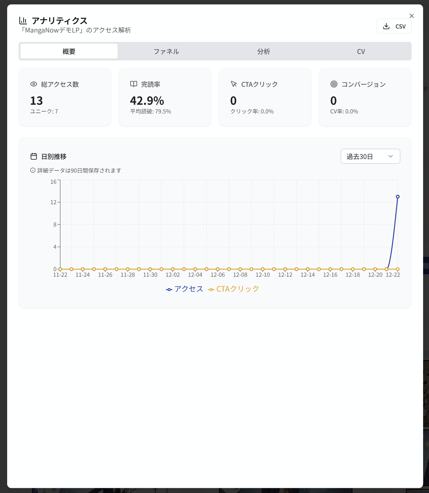 そこで今回、制作した漫画を最短1分で「集客・販促ツール」として公開でき、CVやページ別読了率などの指標で貢献度を可視化できる新機能を実装しました。