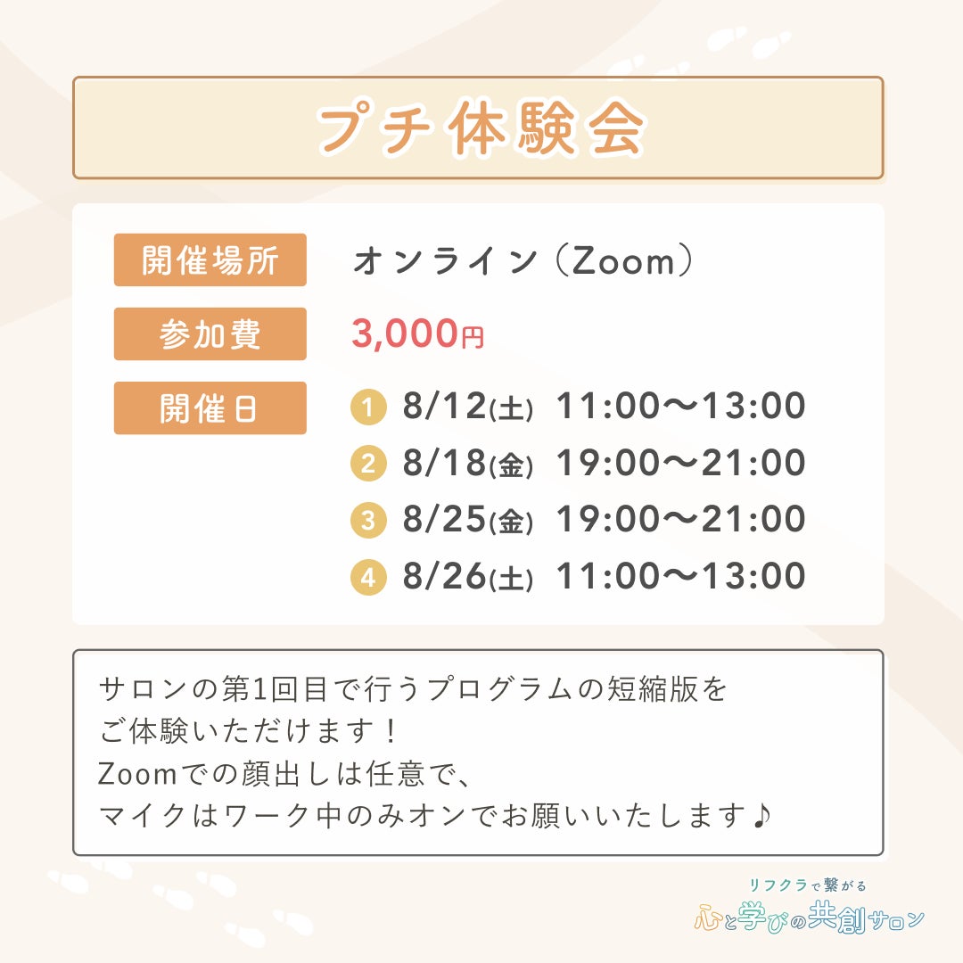 無料の事前説明会と3,000円のプチ体験会を用意しています。