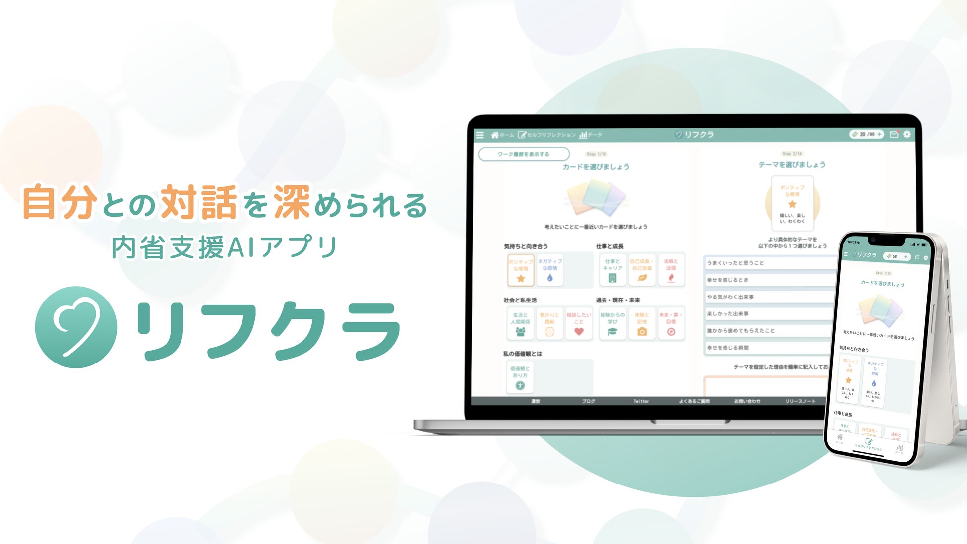 サロンの一番の特徴となるのが、自分との対話を深められる内省支援AIアプリ「リフクラ」の活用です。