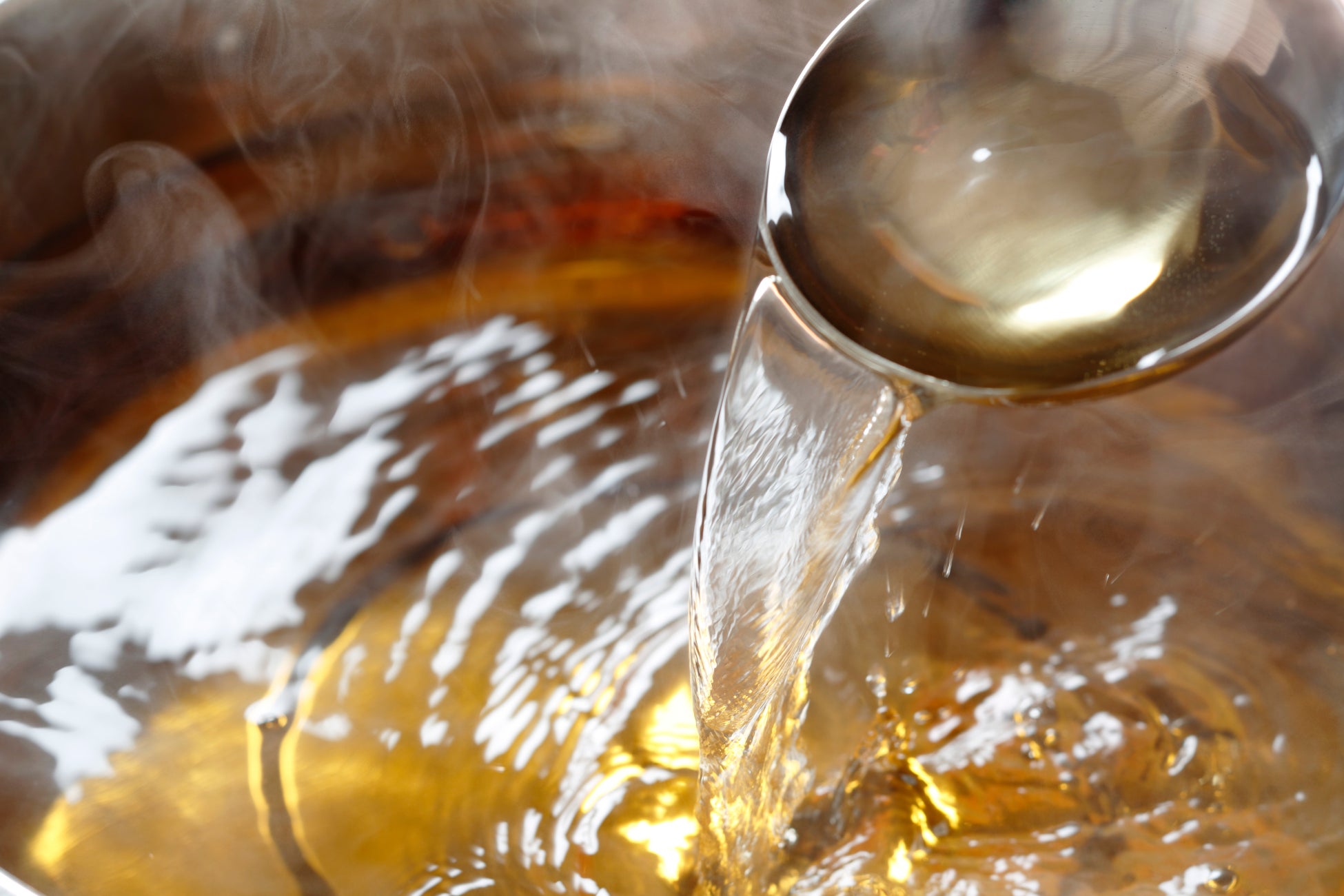 そして、味の決め手は直火でじっくりと焼きあげた鯛の骨。これを使用する事で、旨味が凝縮するパレスいわやこだわりの極みの鯛出汁が完成します。