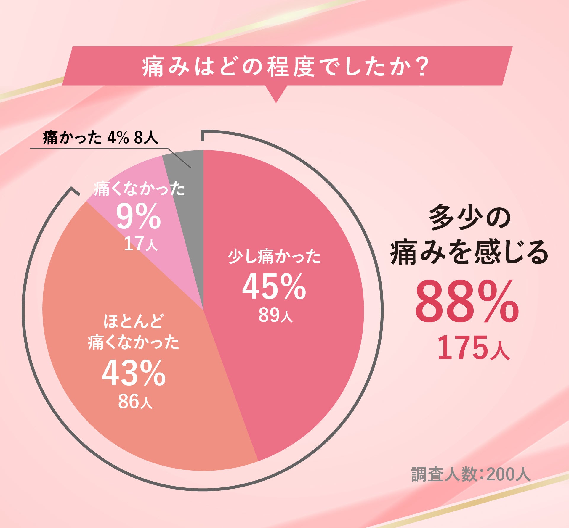 ほとんど痛くなかった:86名(43%)