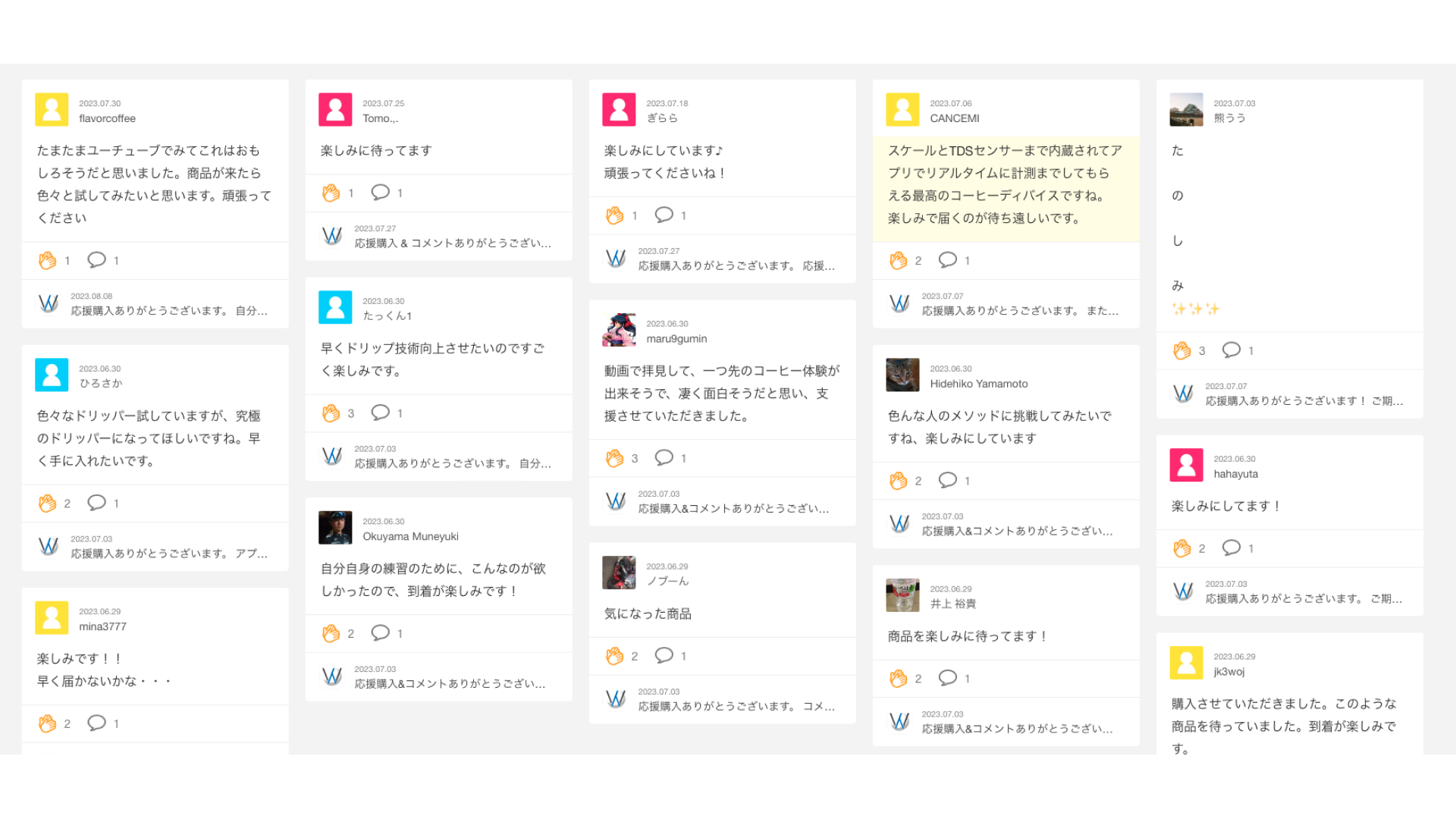 「楽しみ」とのコメントを多くいただいており、コーヒーを楽しみたい方から、技術向上を目指す方まで幅広く好評をいただいております。