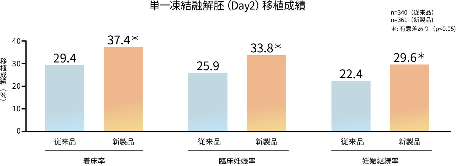 ※1 Amagai et al. Fatty acid supplementation into warming solutions improves pregnancy outcomes after single vitrified-warmed cleavage stage embryo transfers., Reprod Med Biol. 2023;22:e12517.