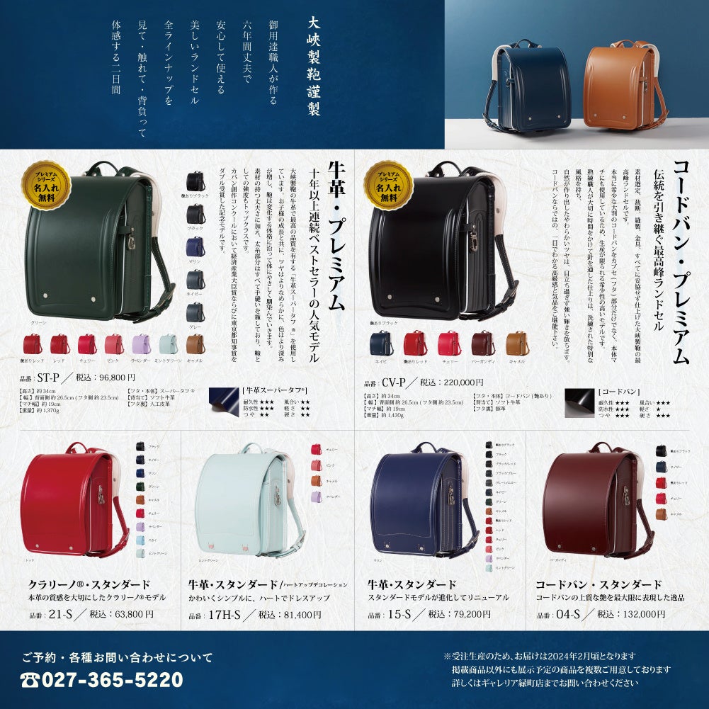 「ギャレリア高崎緑町店」主催、”群馬県初”となるオオバランドセル展示販売会を開催いたします。