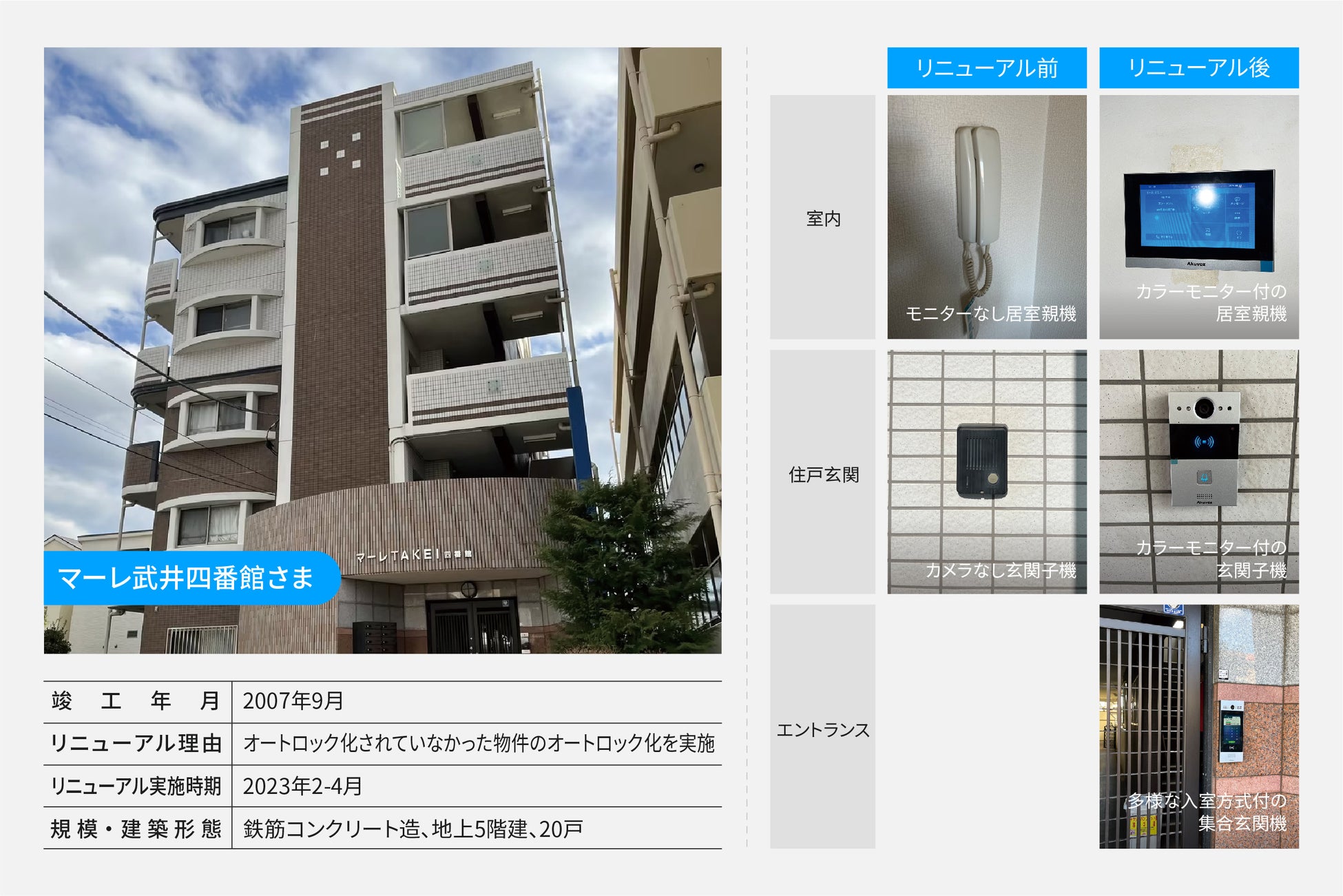 マーレ武井四番館様はJR東海道本線の平塚駅から徒歩16分のマンションです。今回のリニューアルで、既存のインターフォン機器がAkuvoxのR29C 、R20A-2、C313W-2と交換されました。より便利でスマートなインターフォンシステムが実現し、住人の安心感と安全性が確実に向上しています。