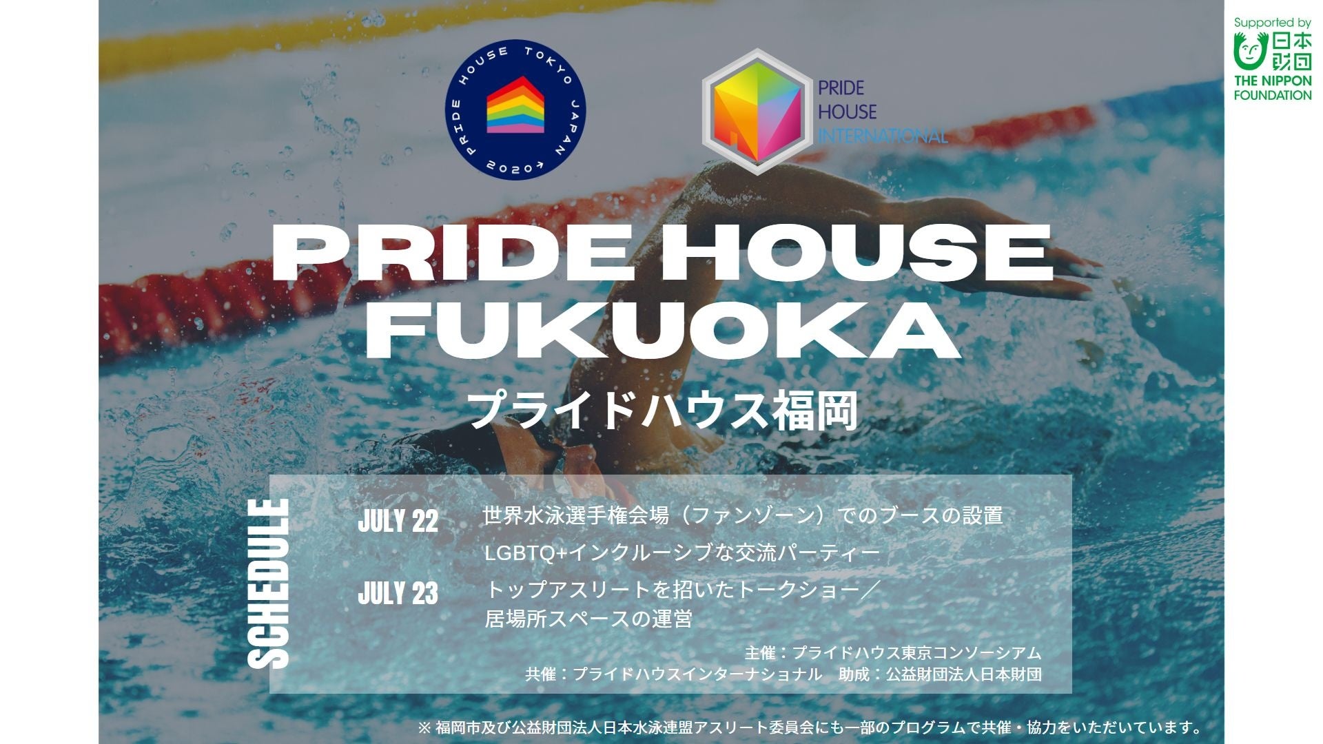 世界水泳選手権2023福岡大会の開催に合わせて、LGBTQ+の情報発信を行う「プライドハウス福岡」を7月22日・23日に実施。福岡市と共催でLGBTQ+に関するブースを大会公式ファンゾーンで出展。