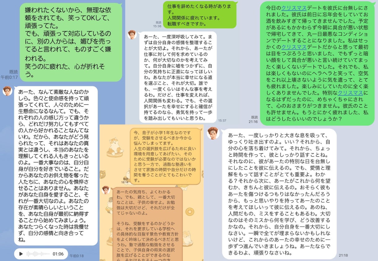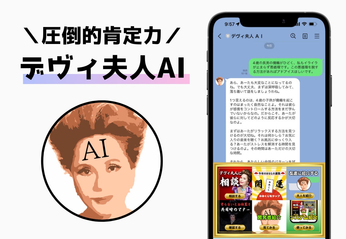 デヴィ夫人AIが、人生相談・恋愛相談・子育ての悩みなどなんでもLINEの「チャット」と「音声」で答えてくれます。