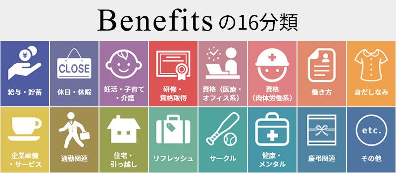 福利厚生の中でも特に「法定外福利厚生」を主軸に企業を可視化。更に「休日・休暇」「出産・育児・介護」「ファッションの自由度」「野球等サークル・同好会」等16ジャンルから検索できるサービスを開発しました。