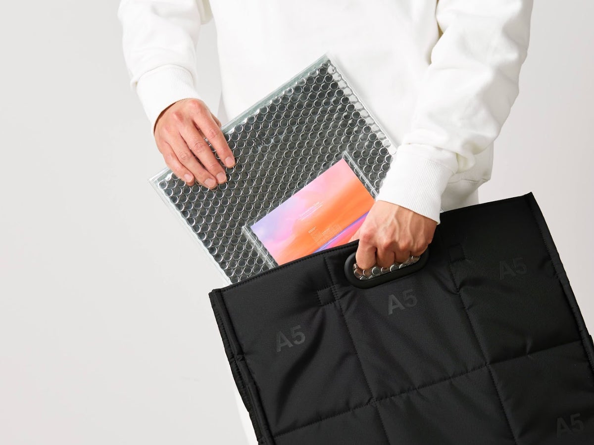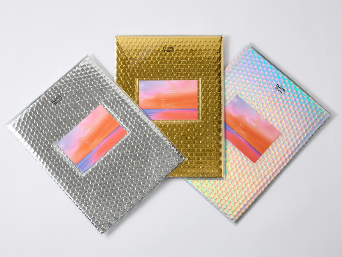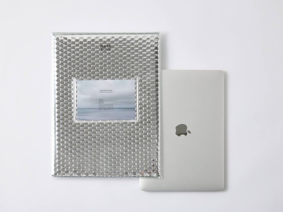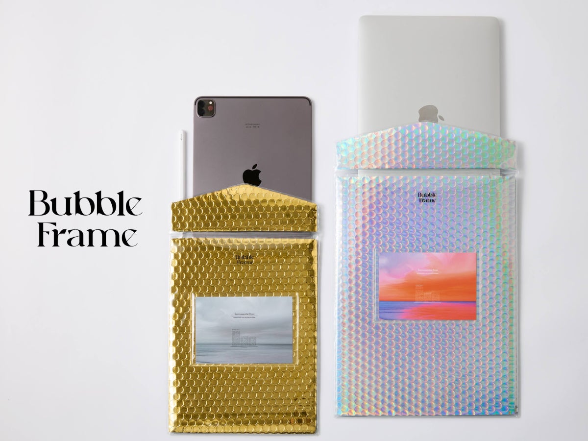 バブルフレームはプチプチとPVCで構成されております。従来の類似品と比較しても軽く、デザイン性にも優れており、PCケース機能以外にもポーチやクラッチバッグとしても使用可能です。
