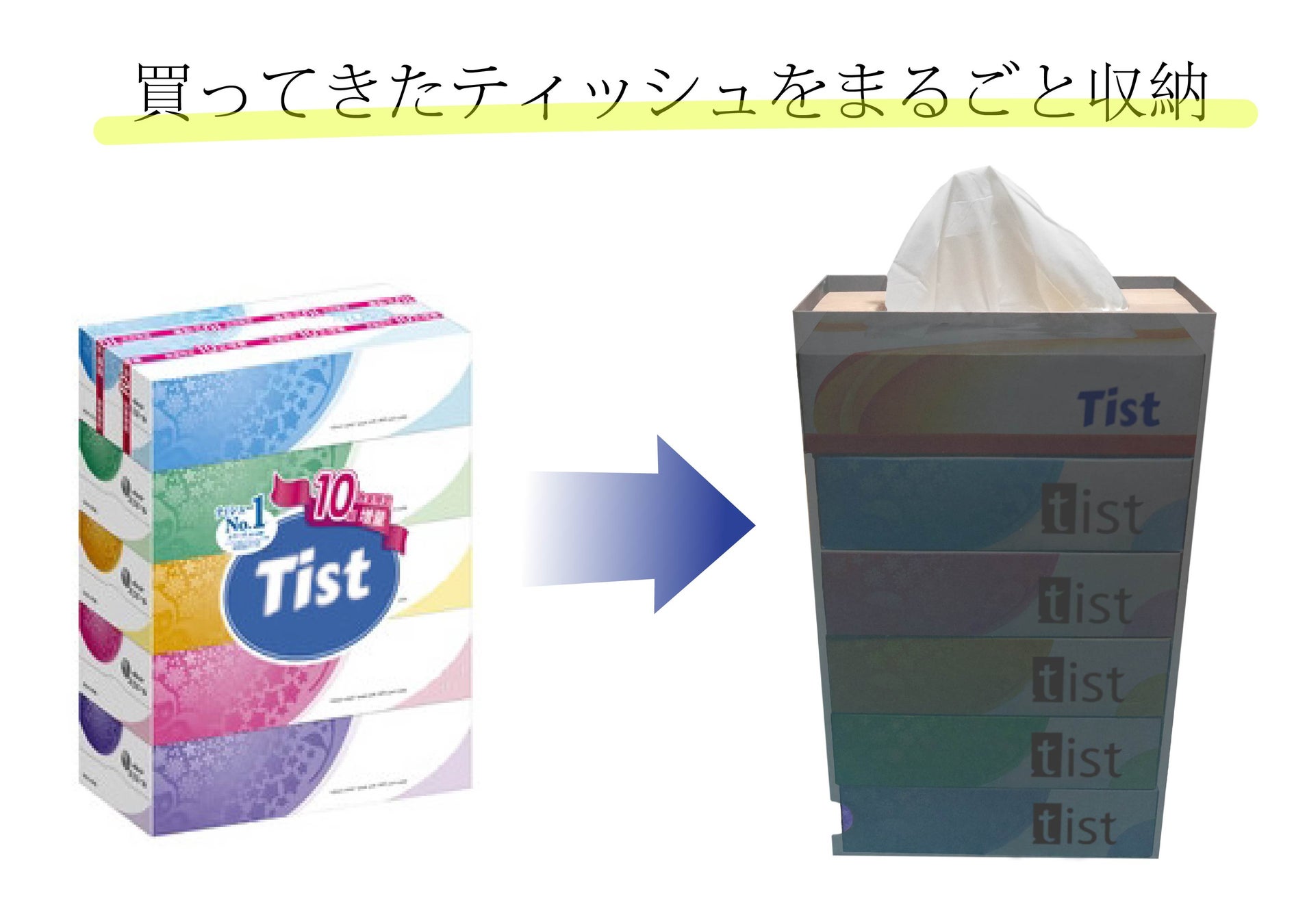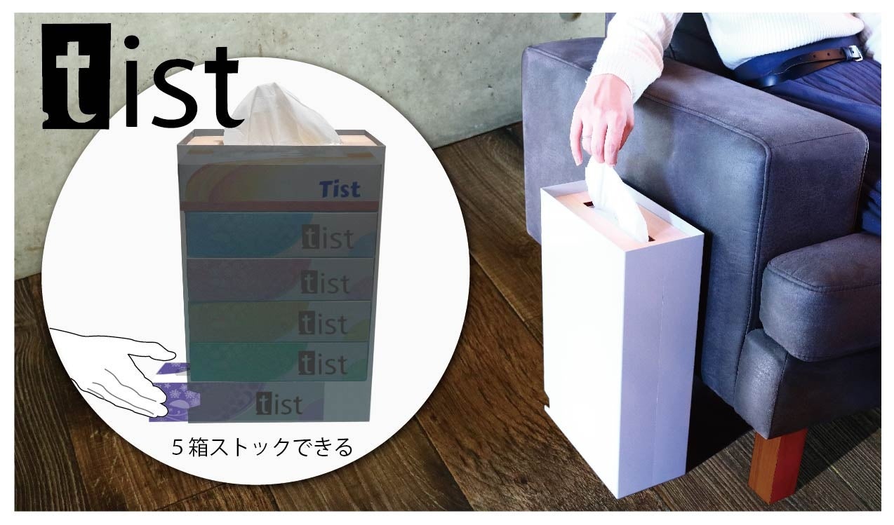 ティッシュケース「ティスト」は、煩わしく感じるティッシュの補充作業を楽にします。