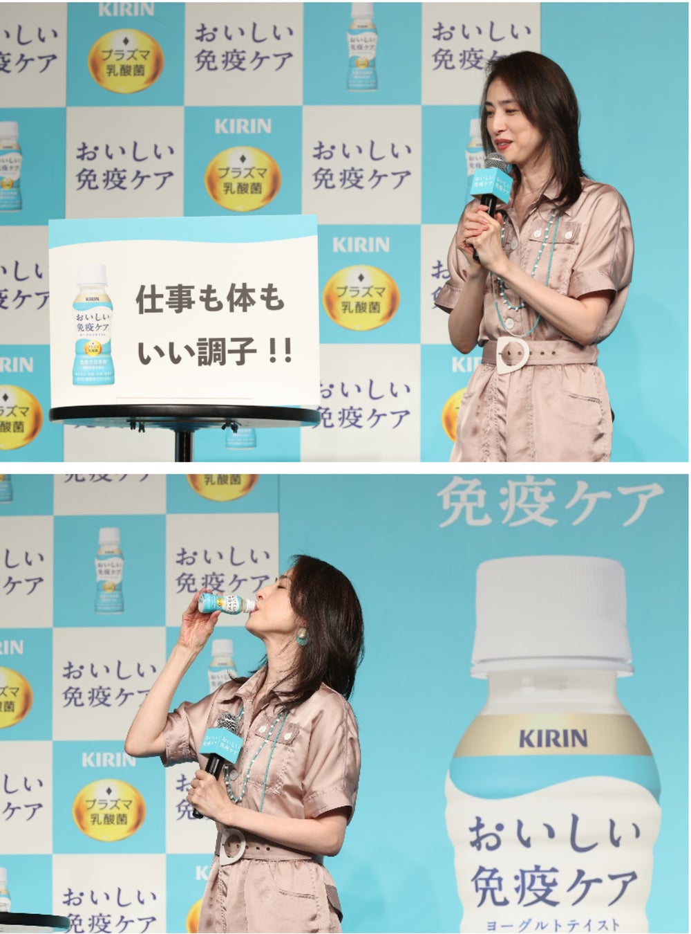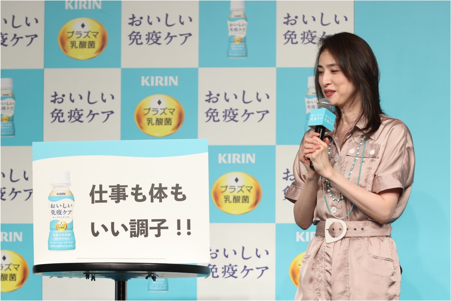 【体調管理に選ばれて好評!「キリン おいしい免疫ケア」新商品発表会】天海祐希さん「仕事も体もいい調子!! 」と自身のいい調子エピソードを発表!