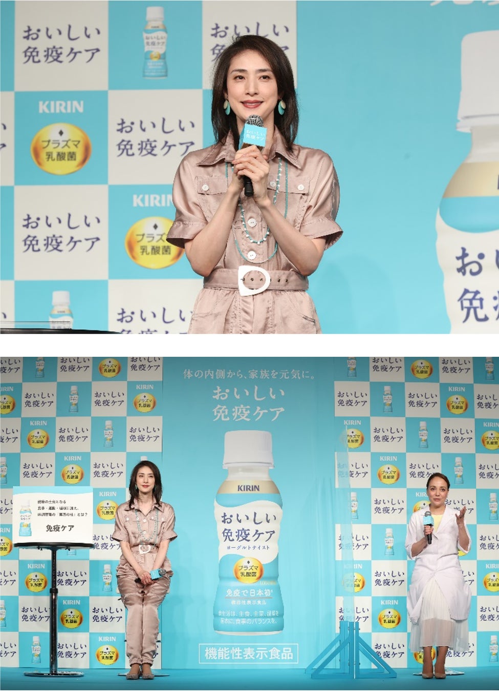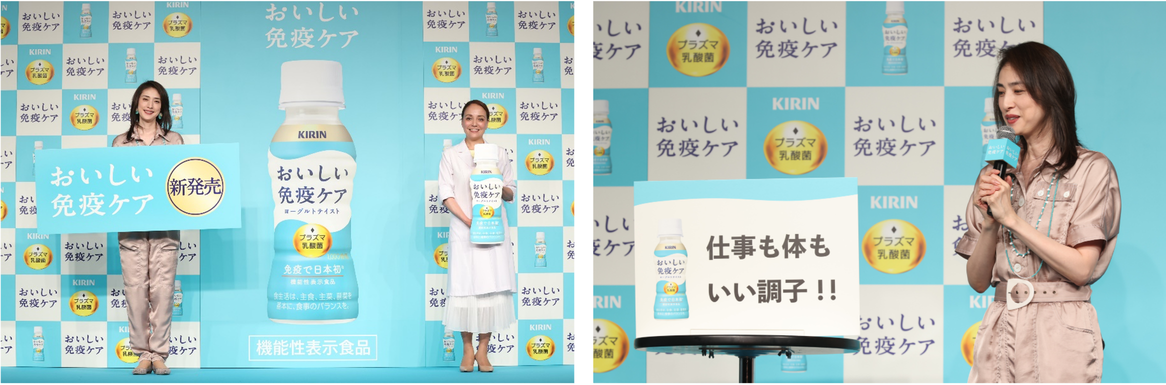これに伴い、イシハラクリニック副院長 石原新菜先生、新CMにも出演中の天海祐希さんをゲストにお招きし、『体調管理に選ばれて好評!「キリン おいしい免疫ケア」新商品発表会』を4月5日(水)にEBiS303・多目的スペースにて実施しました。