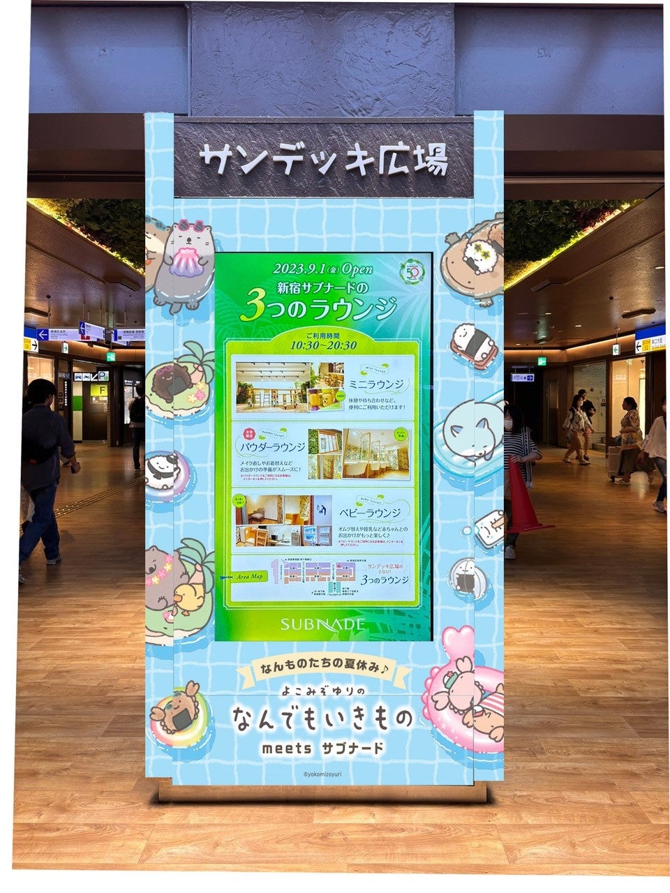 2025年夏、新宿最大の地下街「新宿サブナード」(東京都新宿区)にて、イラストレーター・よこみぞゆりさんによる人気キャラクターブランド「なんでもいきもの」との大型コラボレーションキャンペーンが開催されます。