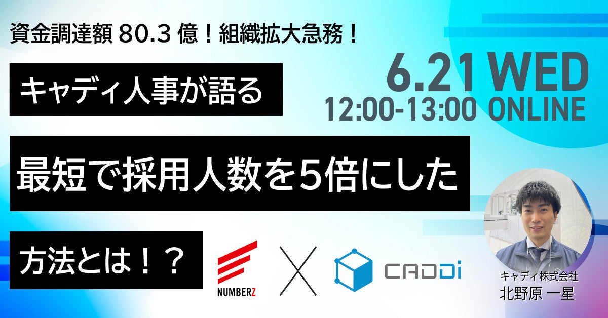 【無料ウェビナー】資金調達額80.3億!組織拡大急務!キャディ人事が語る、最短で採用人数を5倍にした方法とは!?