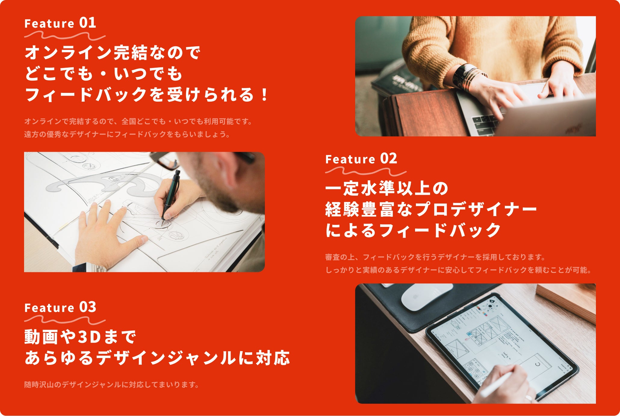 一定水準以上の経験豊富なプロデザイナーによるフィードバック!