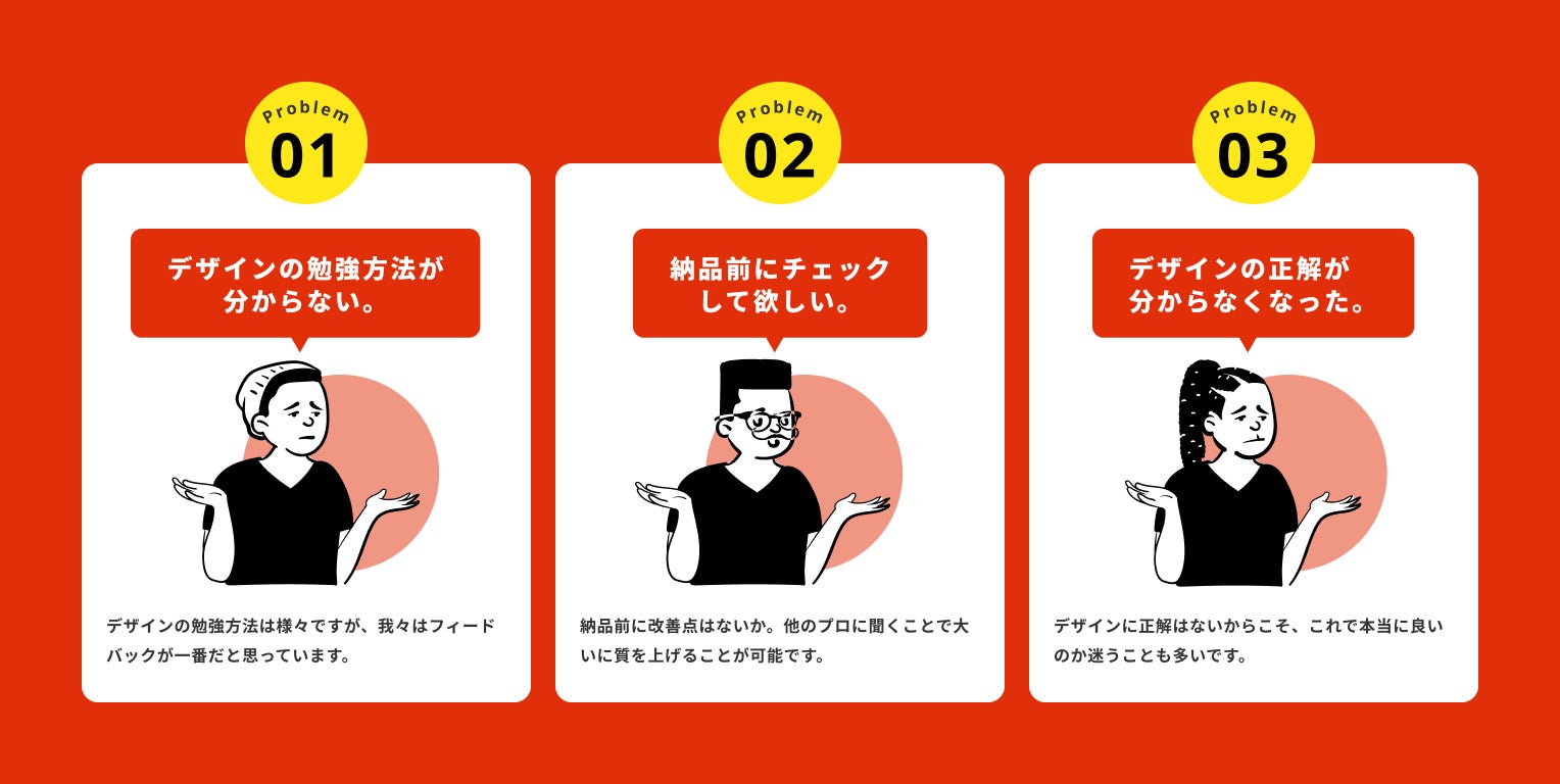 結果として、一番効果的なのは、実際にデザイナーとして活躍している方からのフィードバックだと感じました。しかし、現在日本国内では、デザインのフィードバックを受け取れるようなサービスが存在しません。(2023年6月、当社調べ)