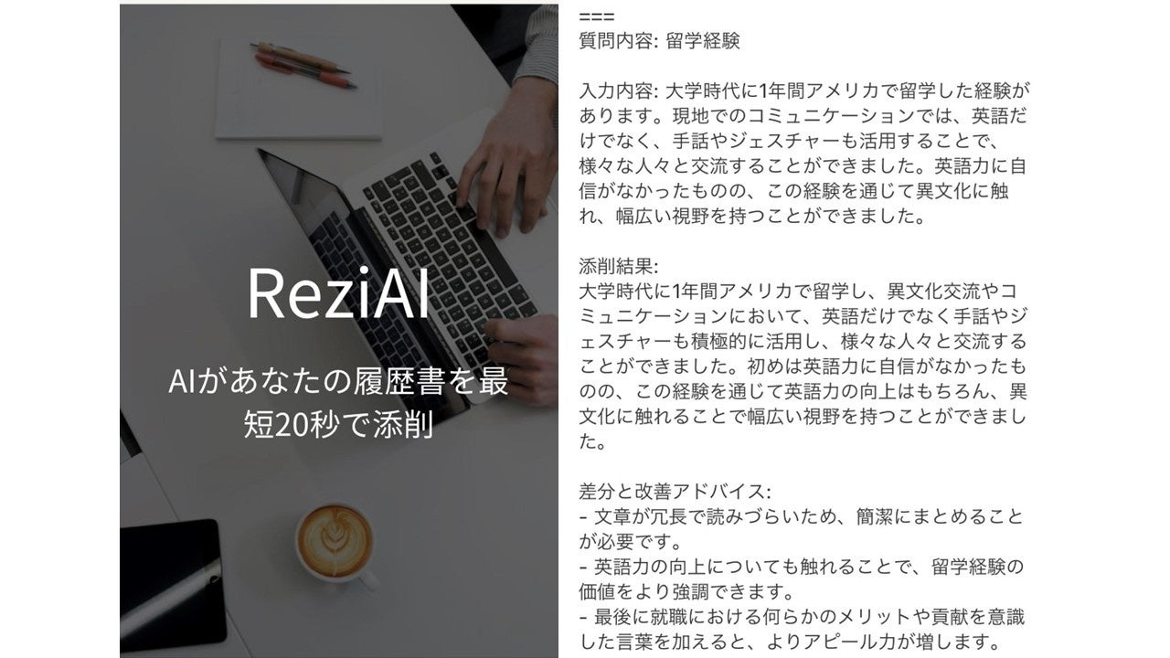 ChatGPTを活用し最短10秒で履歴書添削!「ReziAI」をリリース!