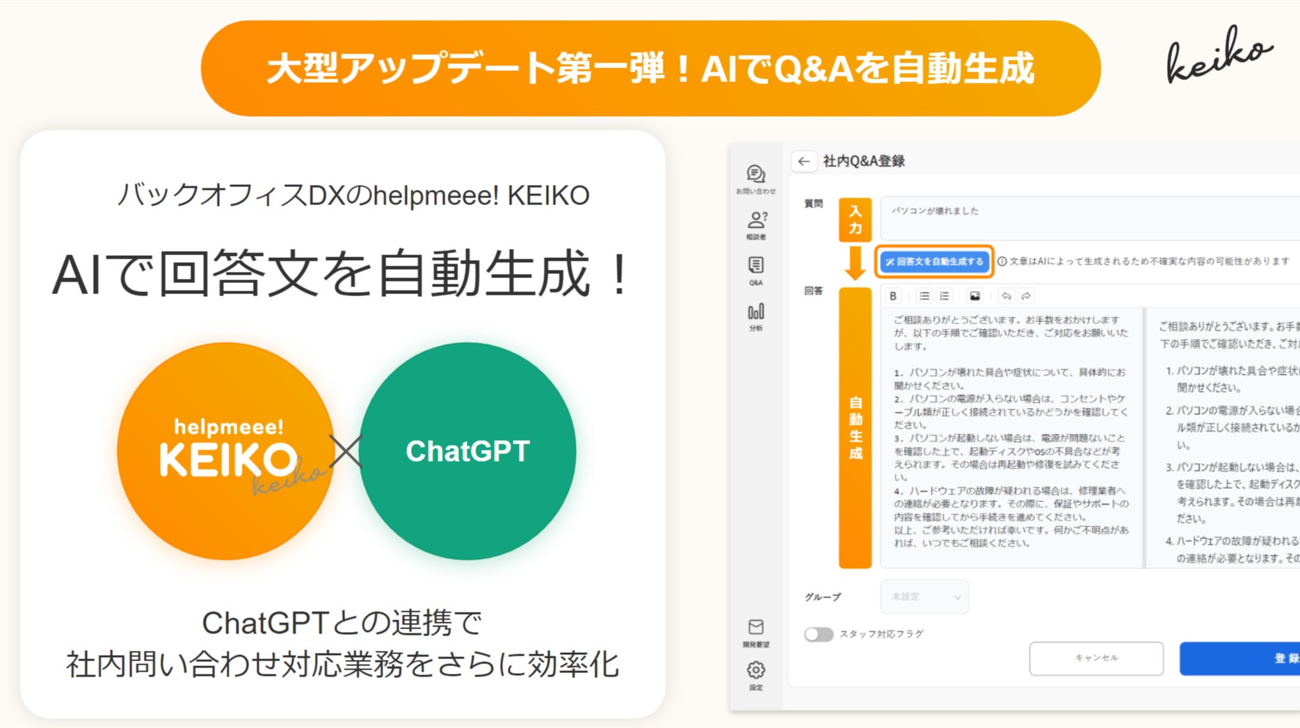ChatGPTとの連携で社内問い合わせ対応業務をさらに効率化|helpmeee! KEIKO