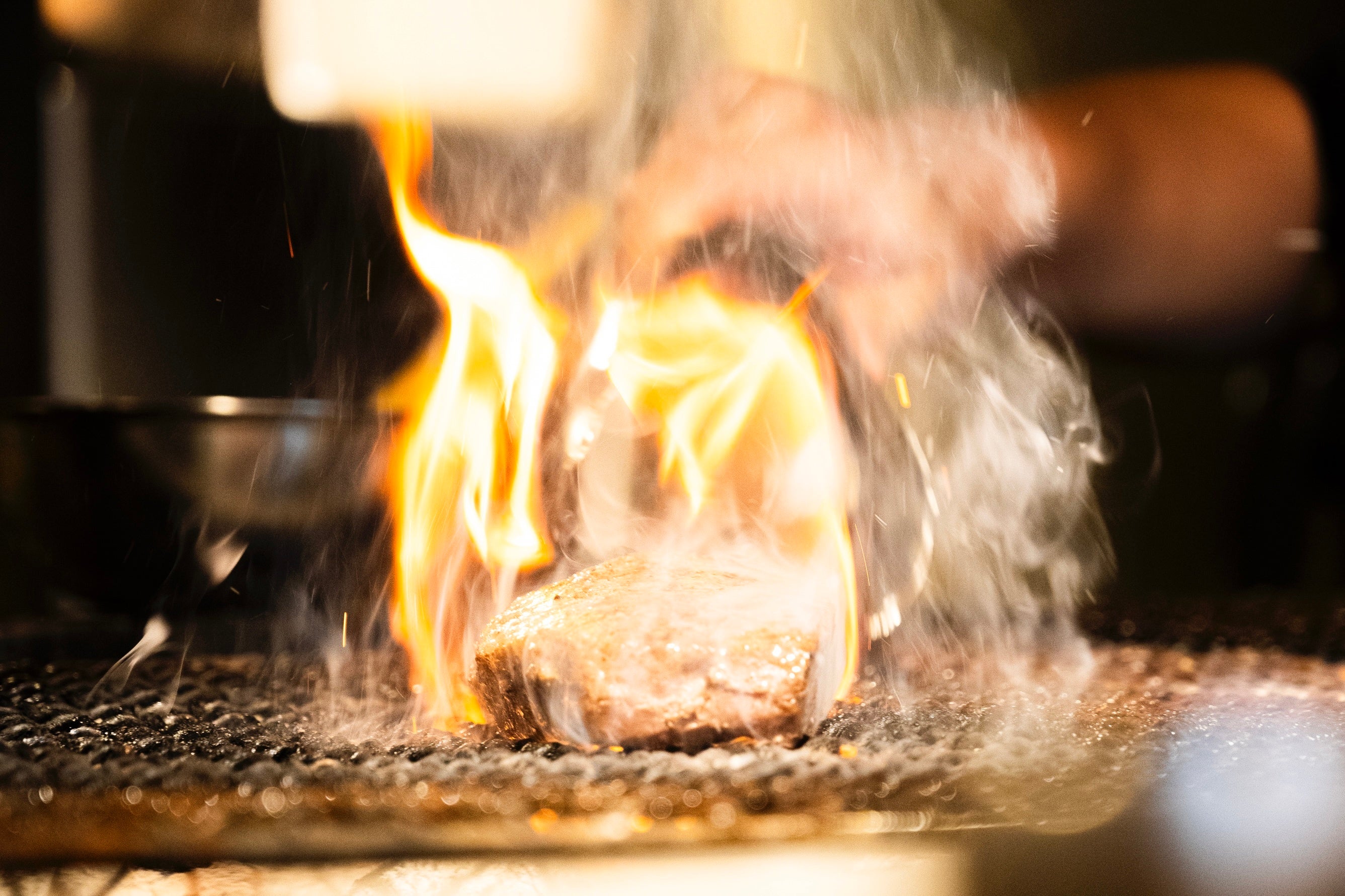 200gの塊を炭火で香ばしく焼き上げ、仕上げには玉葱と醤油ベースの重厚なソースを
