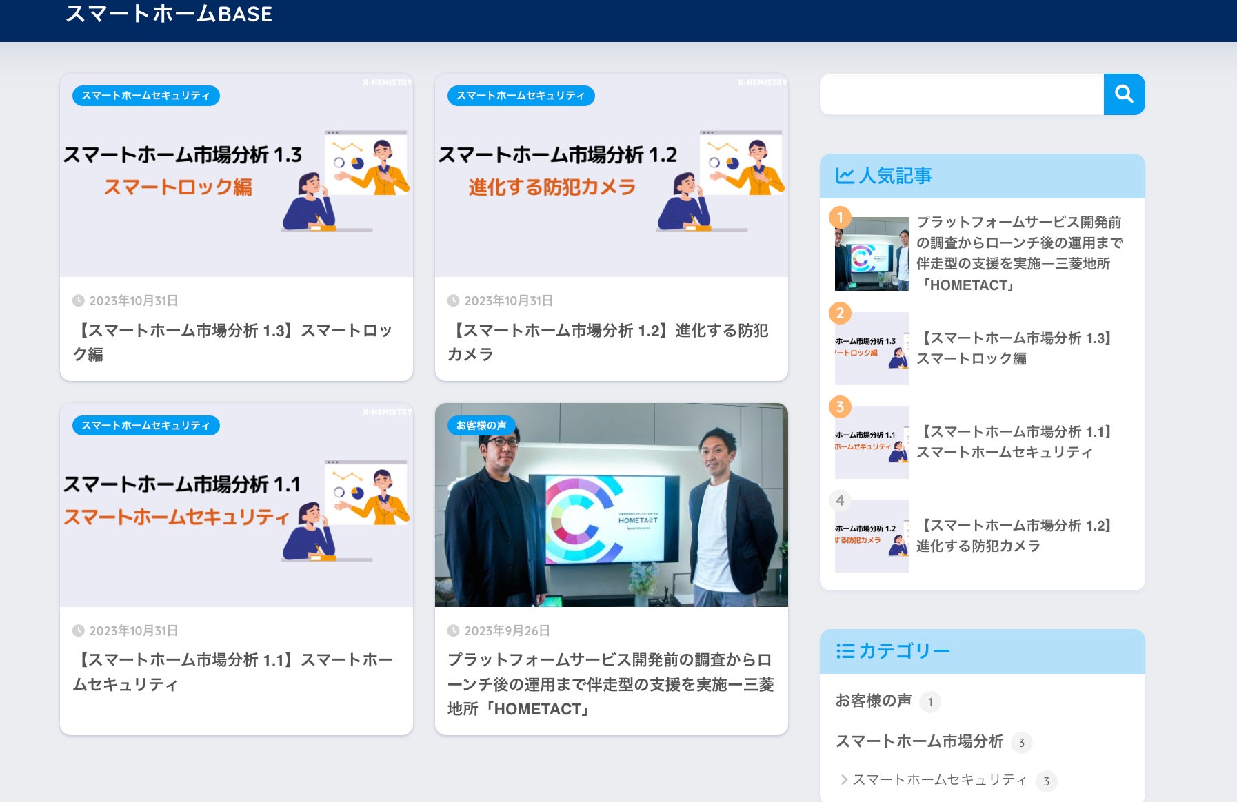この度スマートホームに関する事業開発のコンサルティングおよび伴走支援を行うX-HEMISTRY株式会社(本社:東京都豊島区、代表取締役:新貝 文将、以下 X-HEMISTRY)は、スマートホームに特化したコラムサイト「スマートホームBASE」を公開いたしました。