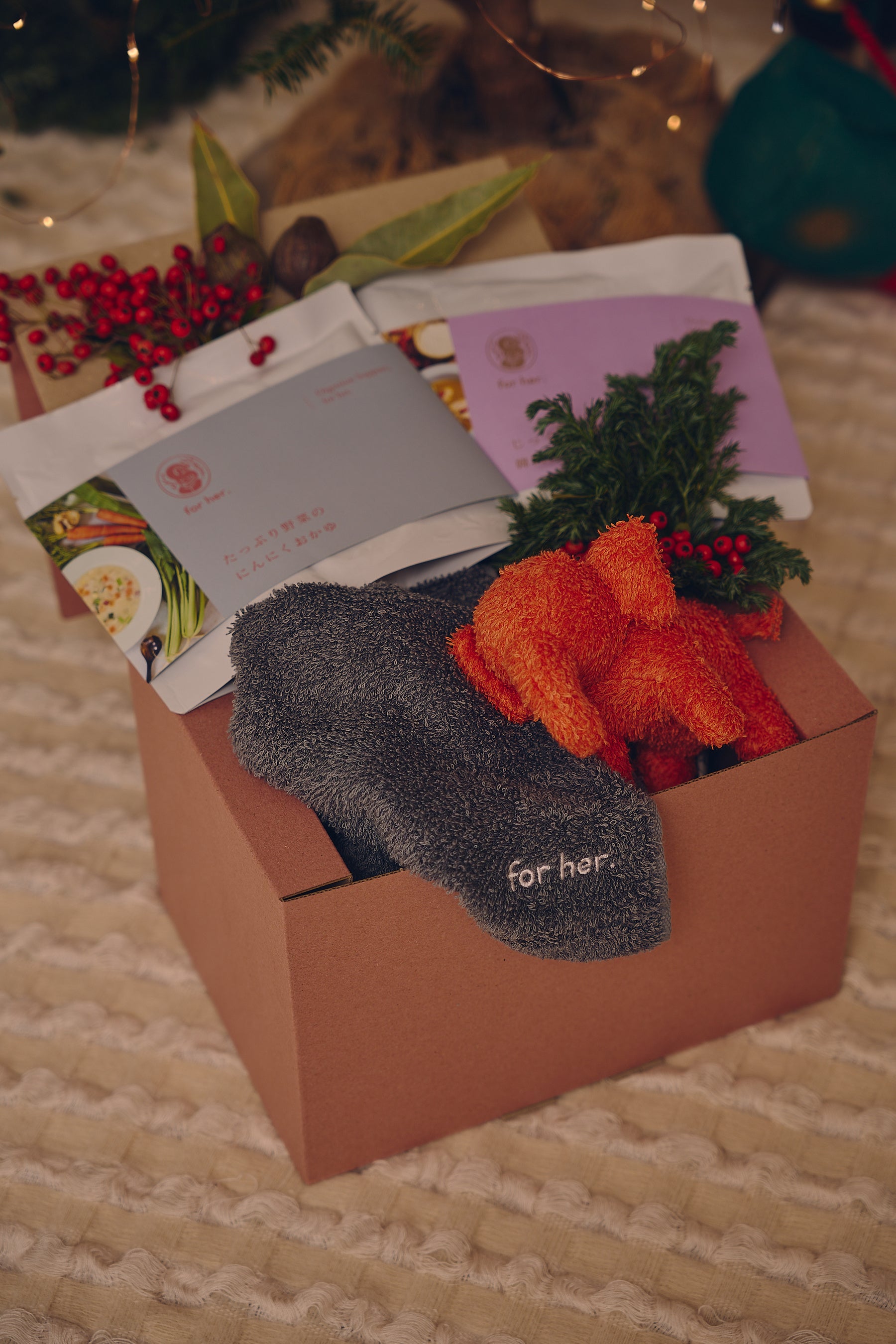 乳製品・白砂糖・化学調味料不使用、産後ママ向けレトルト商品ブランド「for her.」がオーガニックタオルブランド「Hippopotamus(ヒポポタマス)」の商品が入ったWinterギフトを発売!