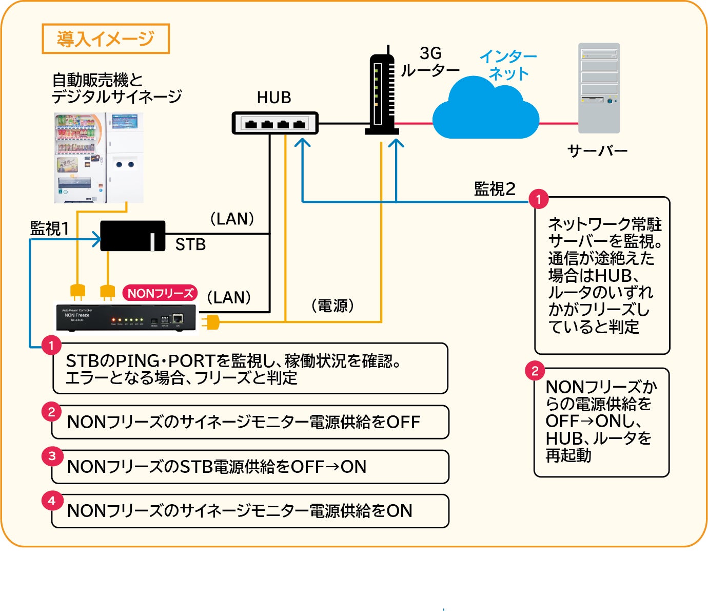 ※NONフリーズと監視機器は同一LAN上で、同一セグメントの中に設置することが必要です。