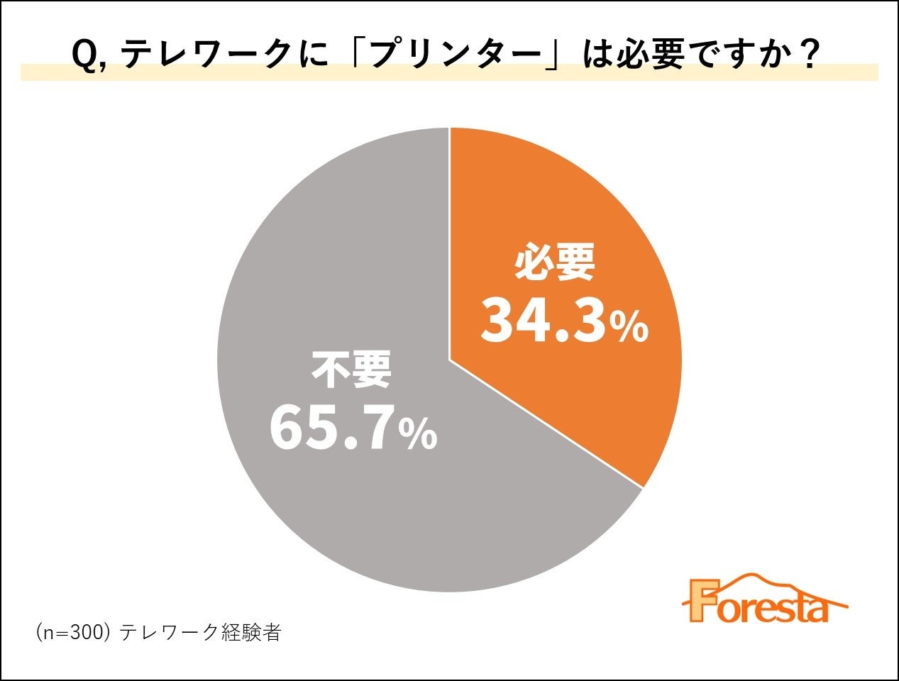 最後に、テレワーク経験者に「テレワーク時にプリンターは必要か否か」をアンケートしたところ、300名のうち65.7%の方が「プリンターは不要」と回答しました。