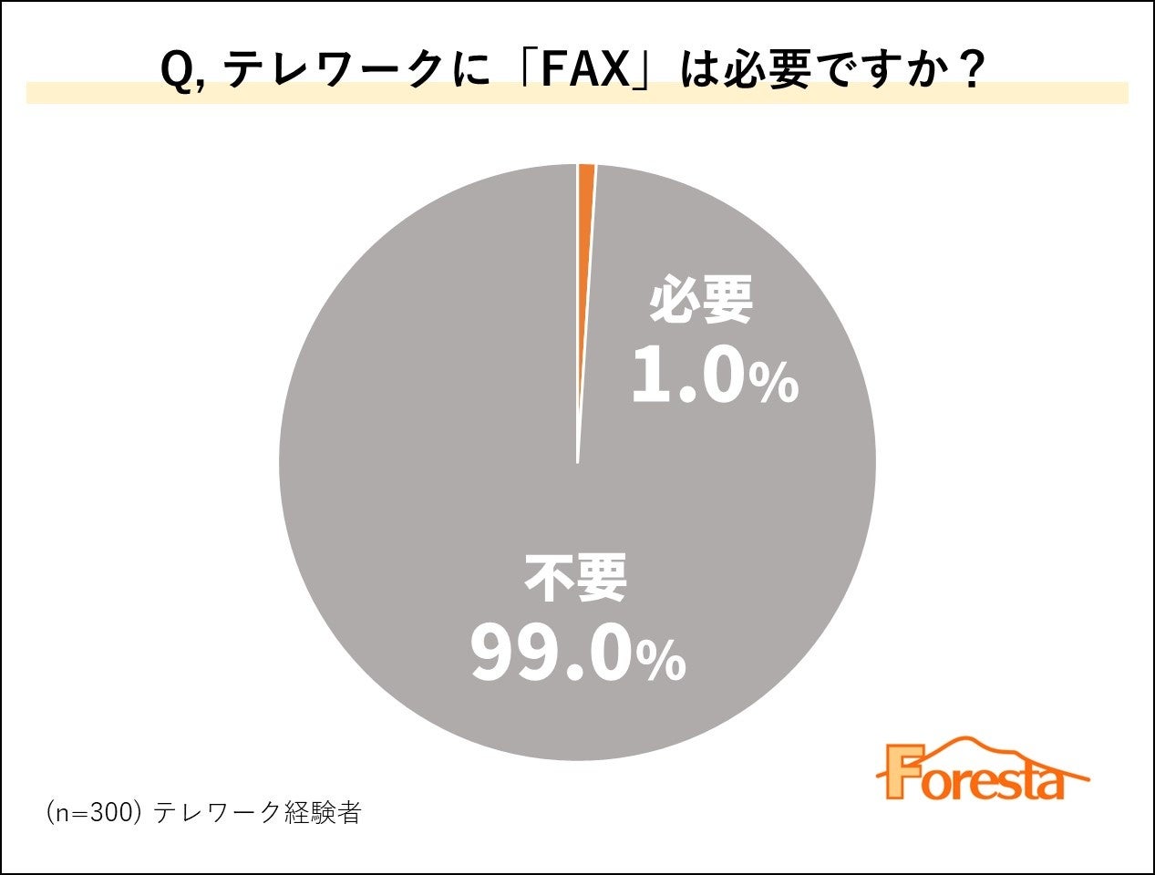 続いて、テレワーク経験者に「テレワーク時にFAXは必要か否か」をアンケートしたところ、300名のうち99.0%の方が「FAXは不要」と回答しました。