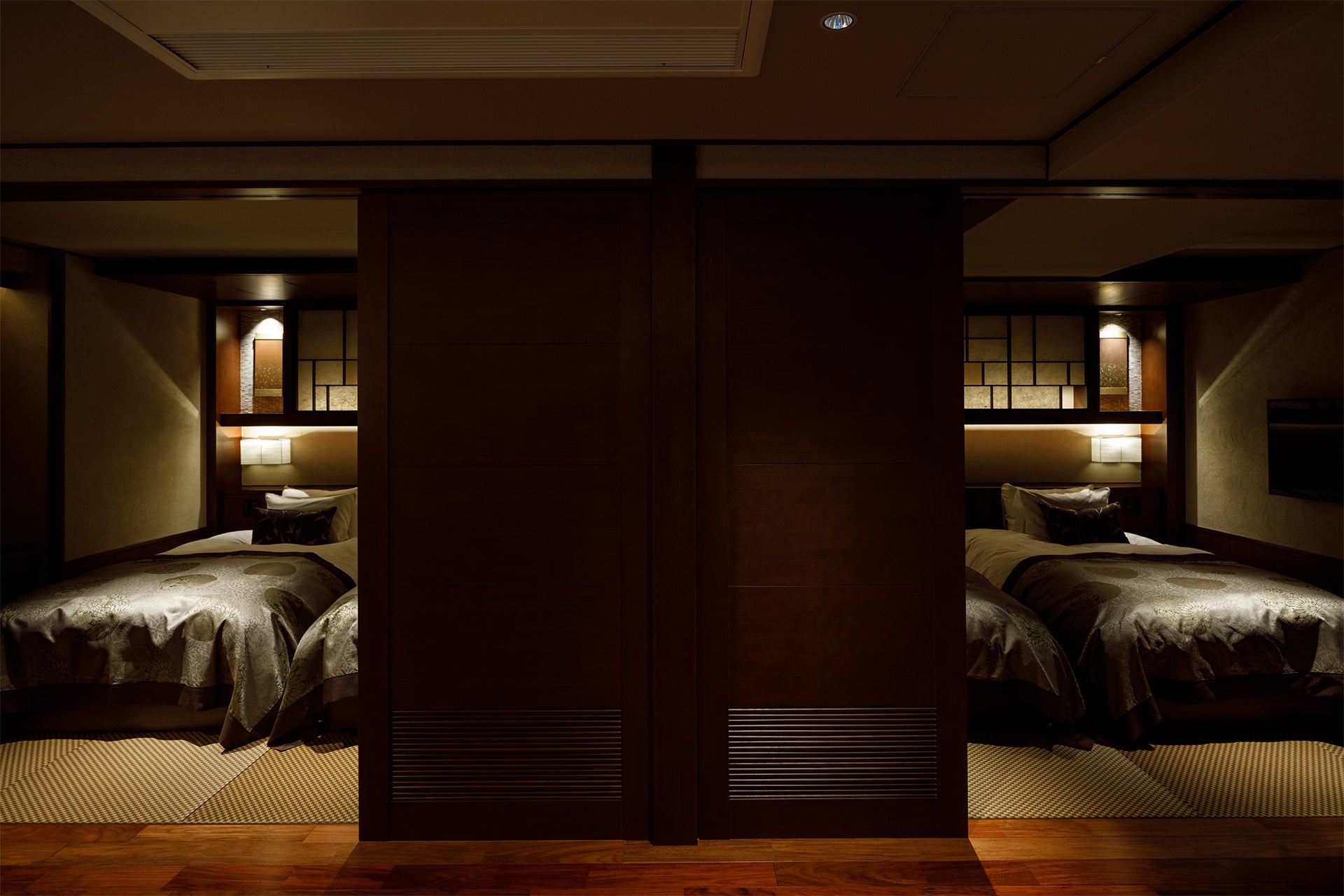 大谷山荘露天風呂付き客室の中では最も広い「大谷山荘スイート」は、客室の中で唯一、サウナや水風呂、4ベッドを備えたスイートルーム。連泊でのご利用やグループでのご旅行にも対応した設えです。