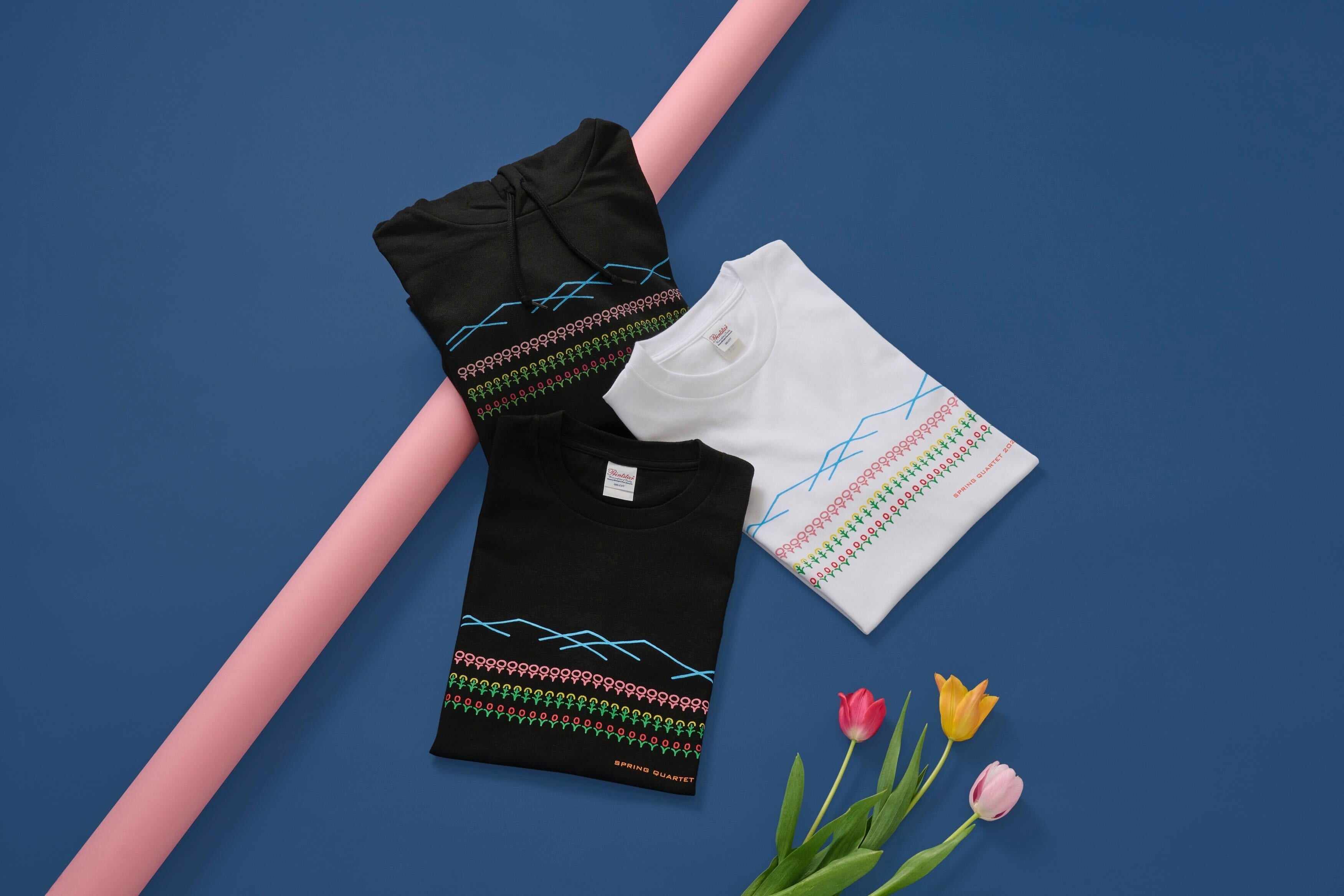 毎年多くの人でにぎわうイベントですが、「この景色をイベントのときだけの風景にしておくにはもったいない」「素晴らしい景色をより多くの人に発信したい」という地域からの声がありました。このニーズに対応するため春の四重奏を洗練したデザインで落とし込んだ「春の四重奏Tシャツ」を制作しました。