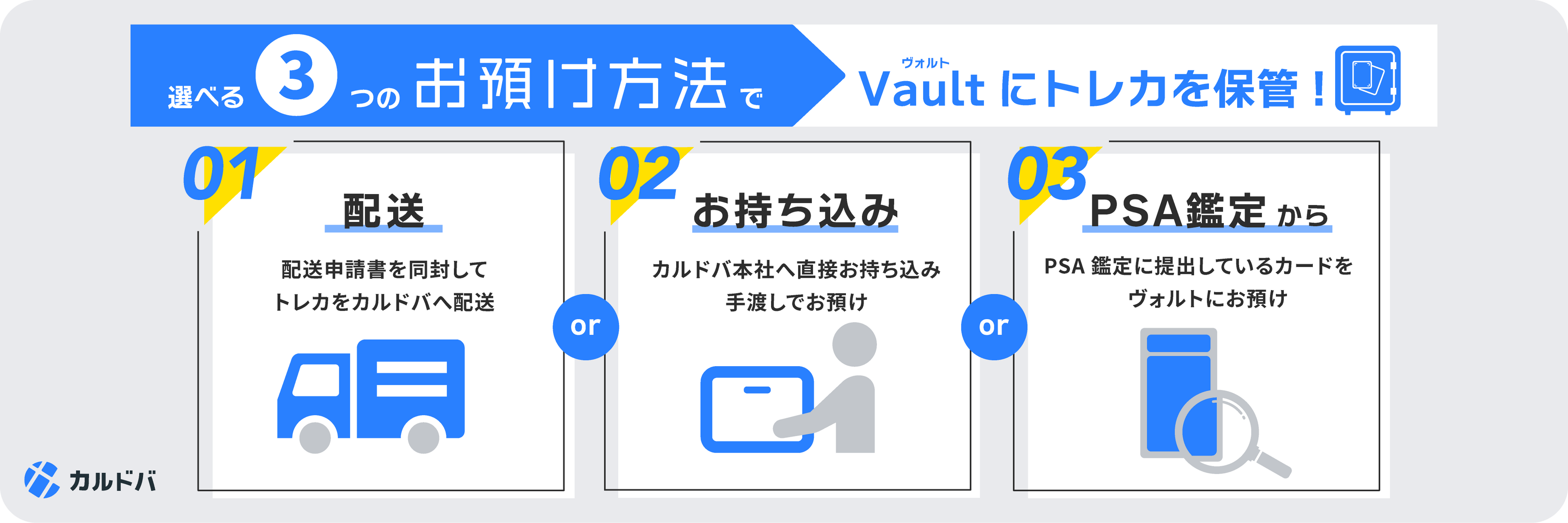 鑑定済みトレカ専門プラットフォーム「カルドバ」では、こういった状況下でも安全・安心・速やかにトレードや取引を楽しんでいただくために「保管」サービスを開始します。