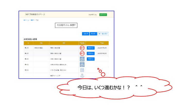 しかし、それらは、最低基準に合わせた横並びの義務教育やその補完に終始する既存の学習塾ではできません。GSCでは、その余裕をつくる「3学年以上の先取り学習“スーパー飛び級🄬”」を実現するためのスーパー教材「スーパートレペ」と家庭学習をリードする「学習管理サポートシステム」をオンラインで、ご家庭にお届けします。