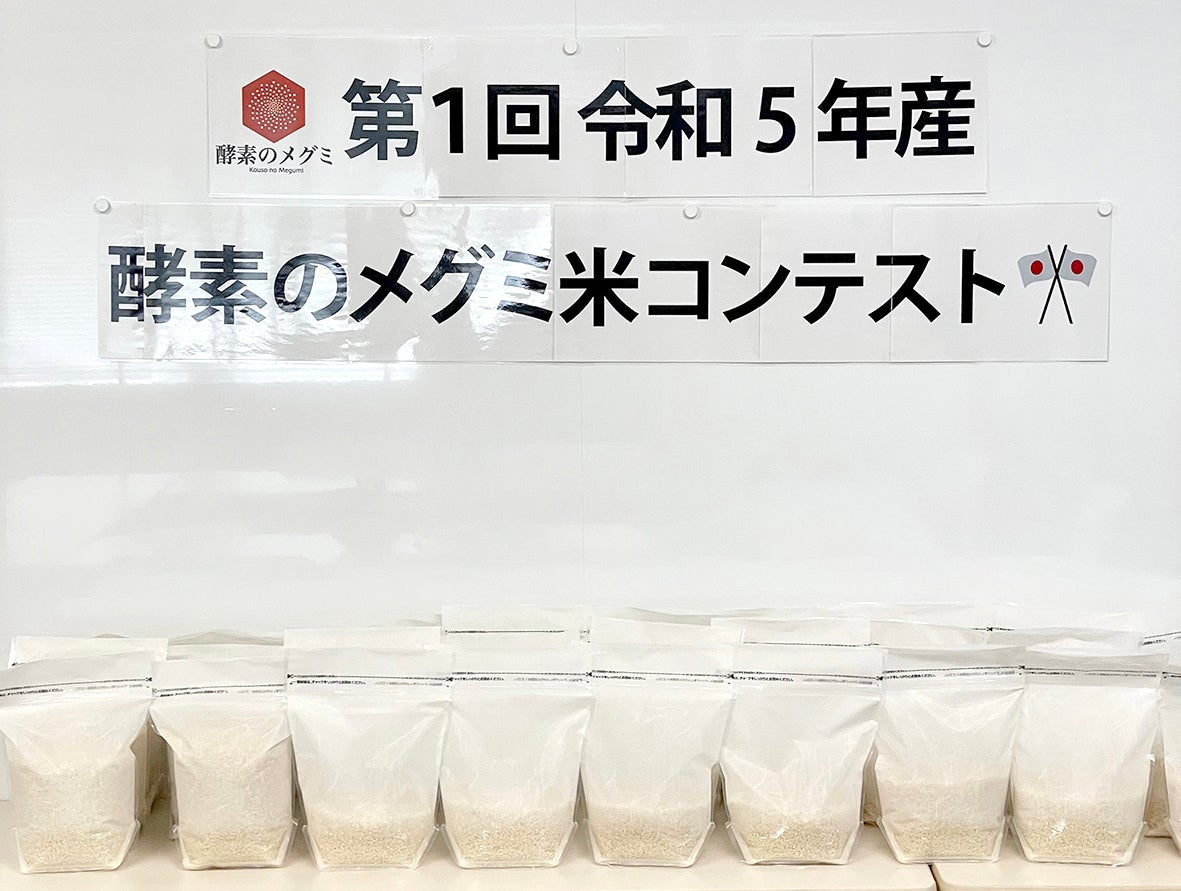 ブランド力強化や生産者のモチベーション向上のため、収穫された米や野菜・果物はより付加価値のあるものへとなるよう昨年度より有機酵素肥料で栽培されたお米の「第1回令和5年度産酵素のメグミ米コンテスト」を開催することとなりました。