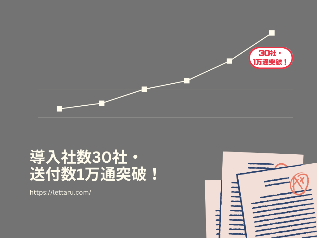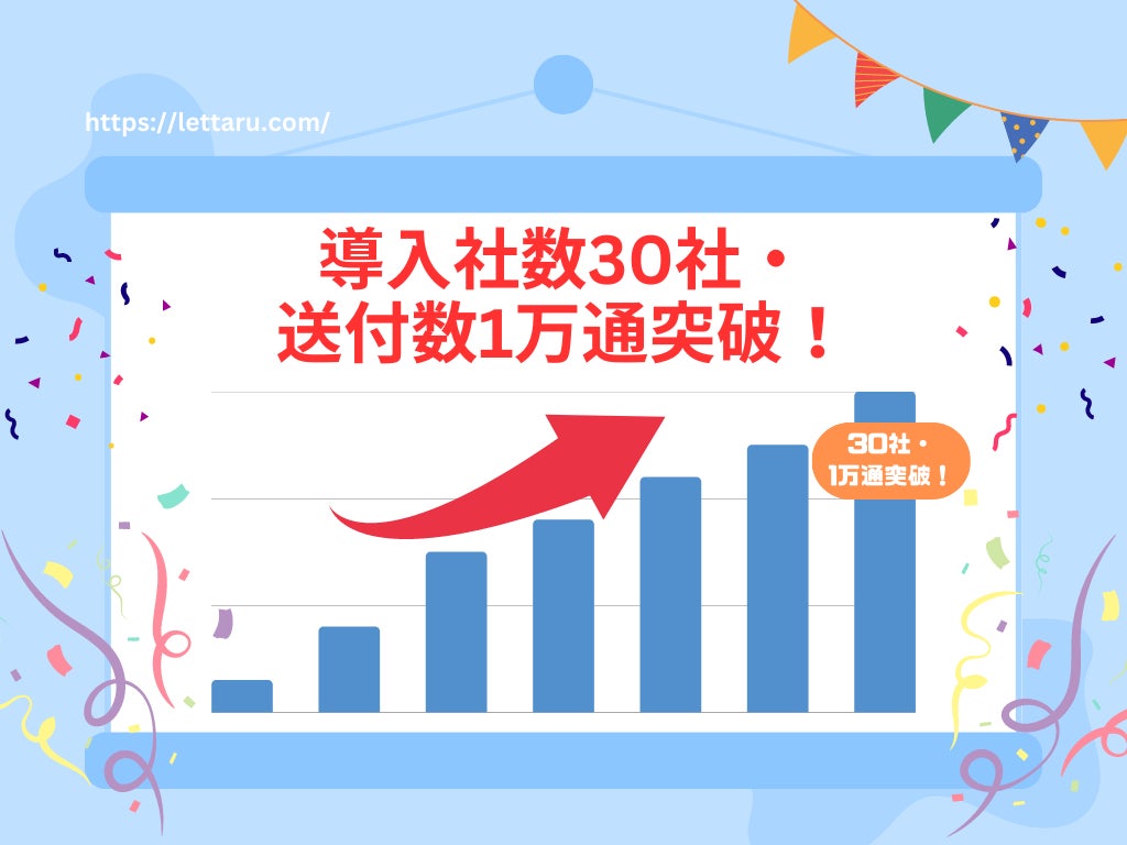 新サービスからわずか数ヶ月で、30社に導入いただき1万通の送付実績を達成しました!