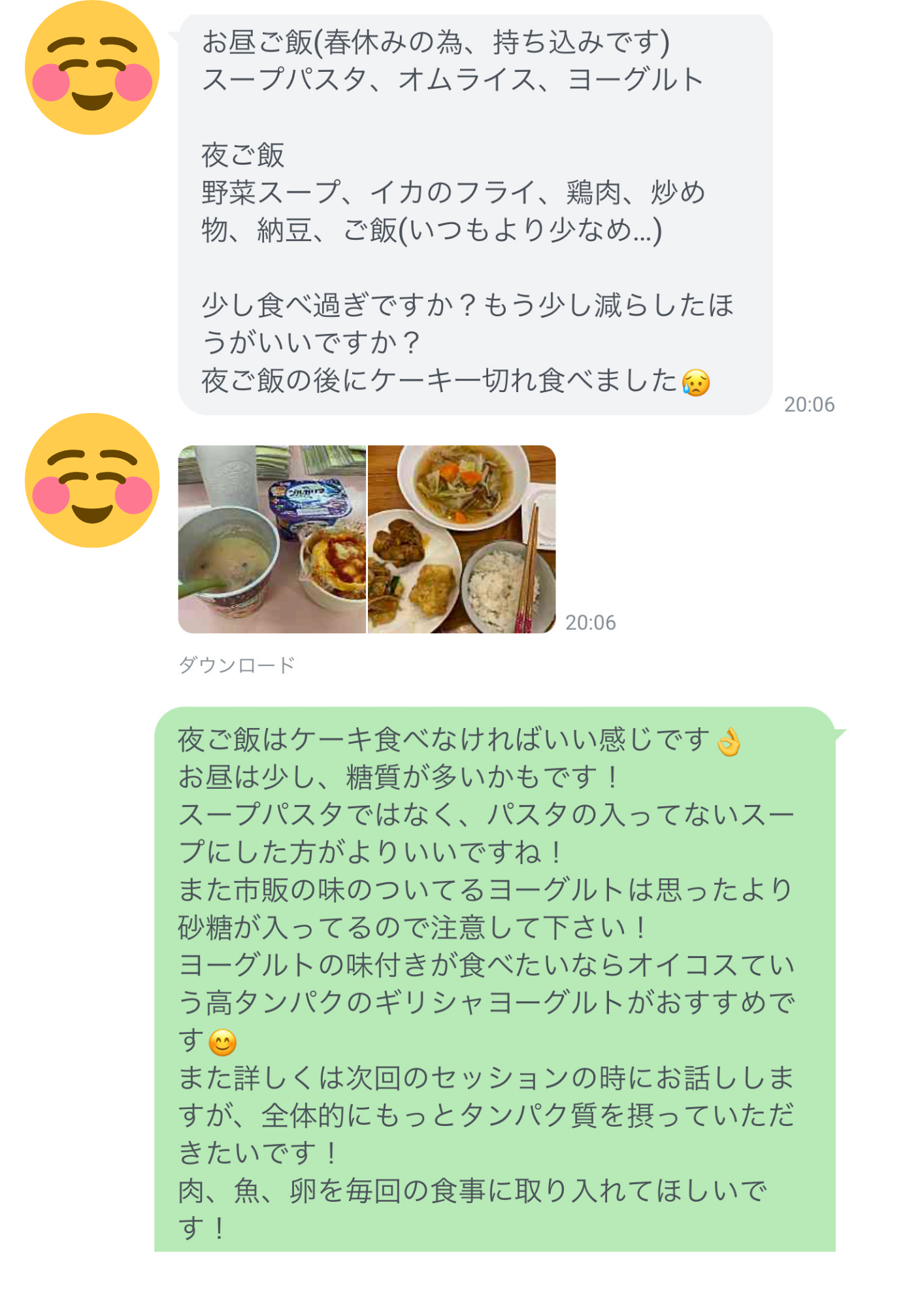 メッセージで食事の改善をしていきます。コースを通じて一生使える正しいダイエットの知識が身につきます!